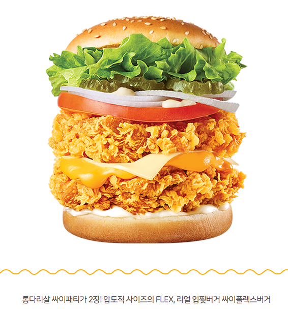싸이버거와 함께 잘 나가는 메뉴 중 하나인 싸이플렉스버거는 압도적인 사이즈로 푸짐하게 드시고 싶은 분들은 위한 버거랍니다. 이전에 한번 맛봤는데 저한테는 조금 과한 느낌이더라고요.