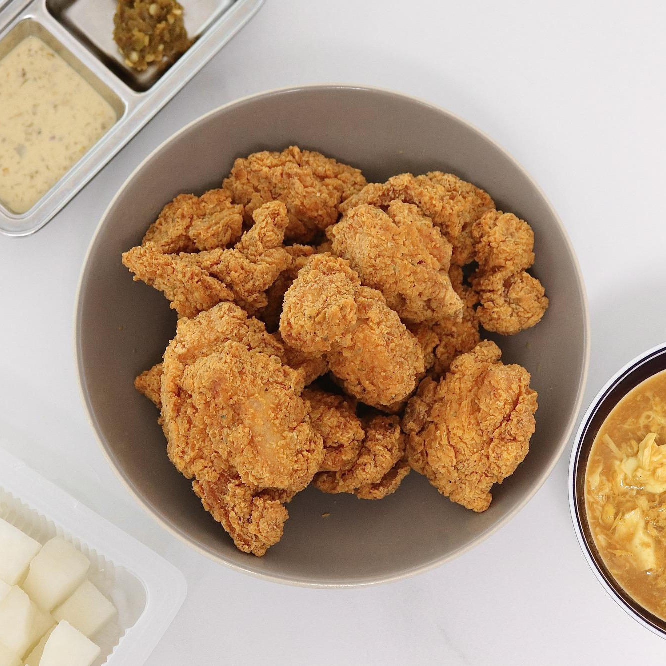 아무것도 찍어먹지 않아도 그 자체로 맛있었던 글라이드 순살 고추치킨이었답니다.