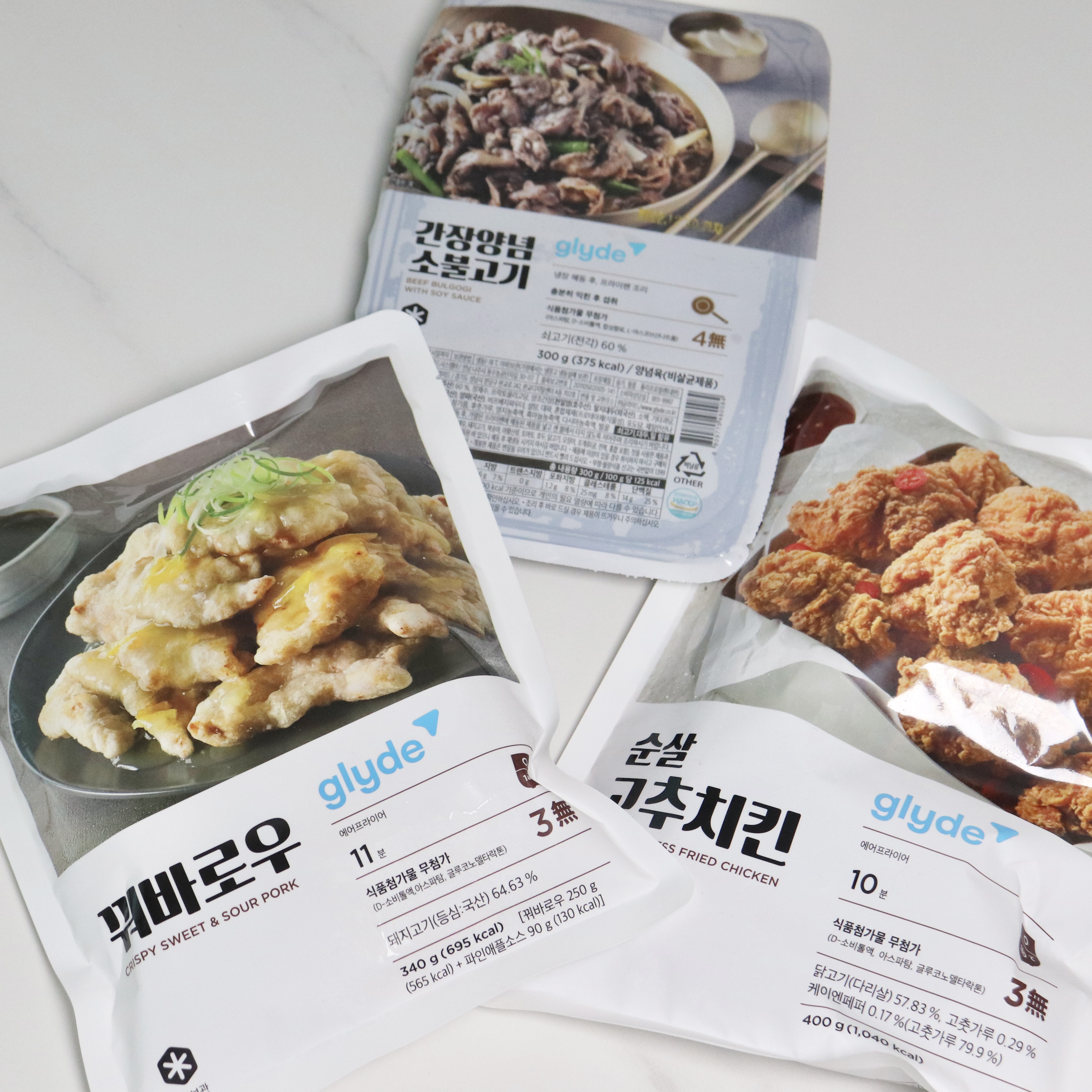 우선 글라이드에서는 고기파티라는 주제로 세 가지 제품이 나와있는데요. 닭고기, 돼지고기, 소고기를 모두 즐길 수 있는 구성이랍니다. 그중에서 오늘은 순살 고추치킨을 소개해볼게요.