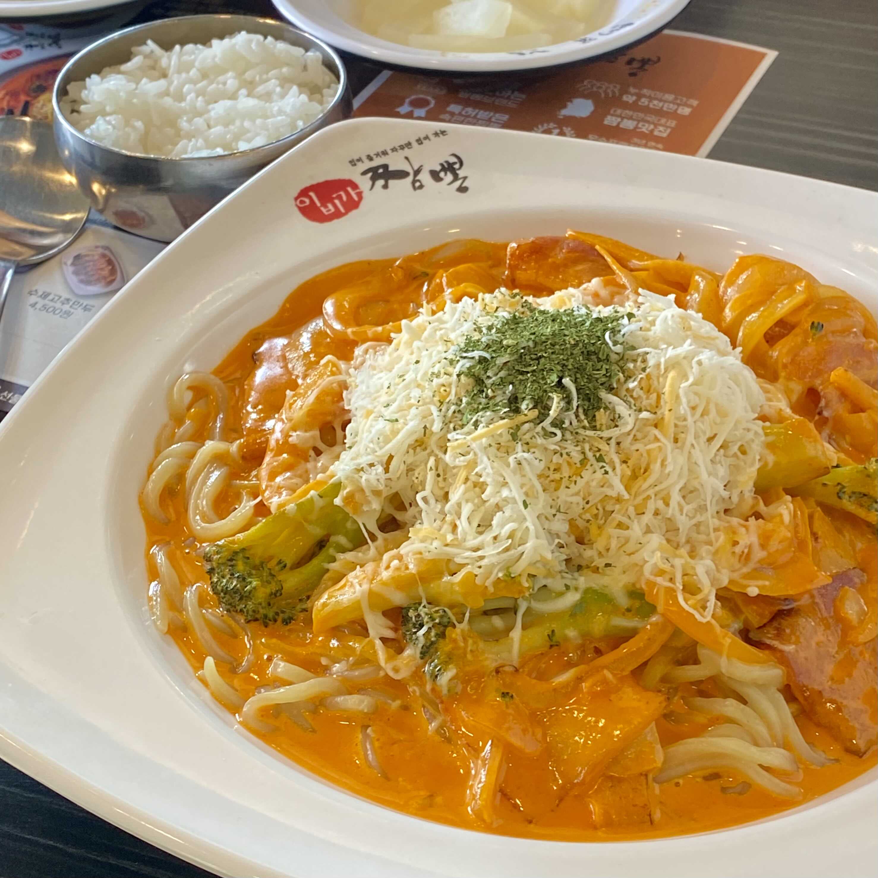일반 짬뽕처럼 국물이 많은 건 아니고 약간 파스타의 형태였어요. 꾸덕꾸덕한 소스에 위에 올라간 치즈까지 먹음직스러워 보이더라고 요.