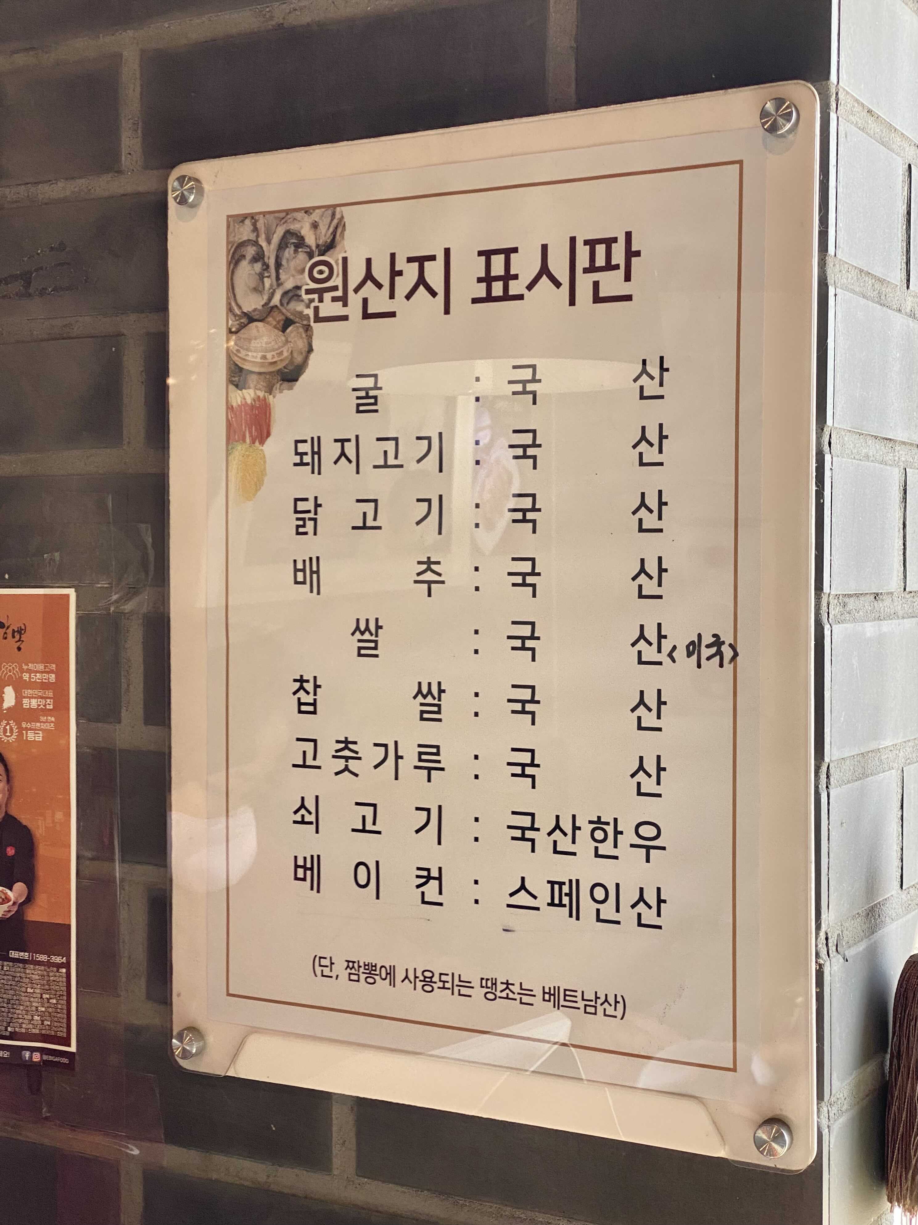 굴, 돼지고기, 닭고기, 배추 등 다양하게 쓰이는 재료들의 원산지도 나와있어 믿고 먹을 수 있었어요.