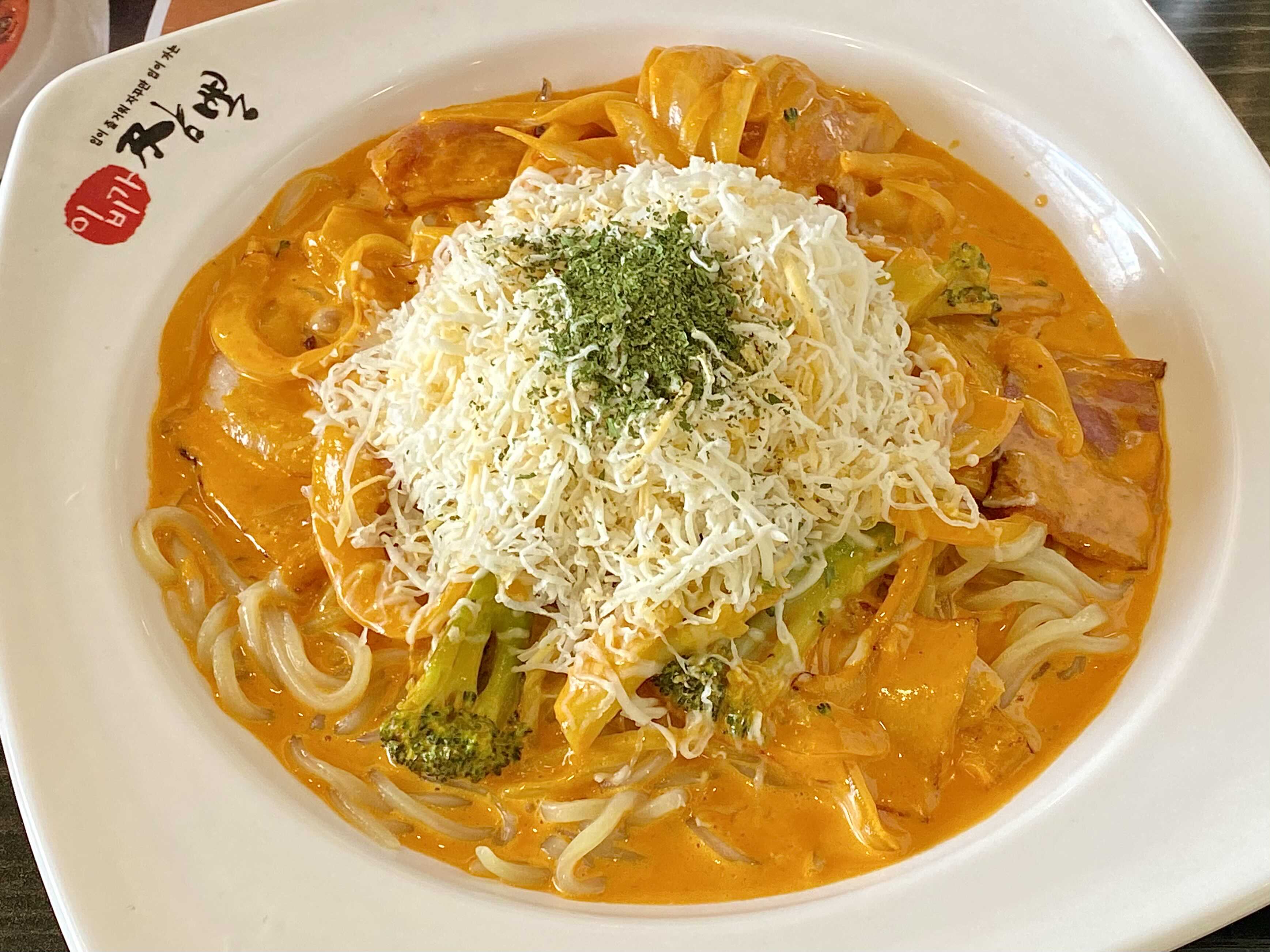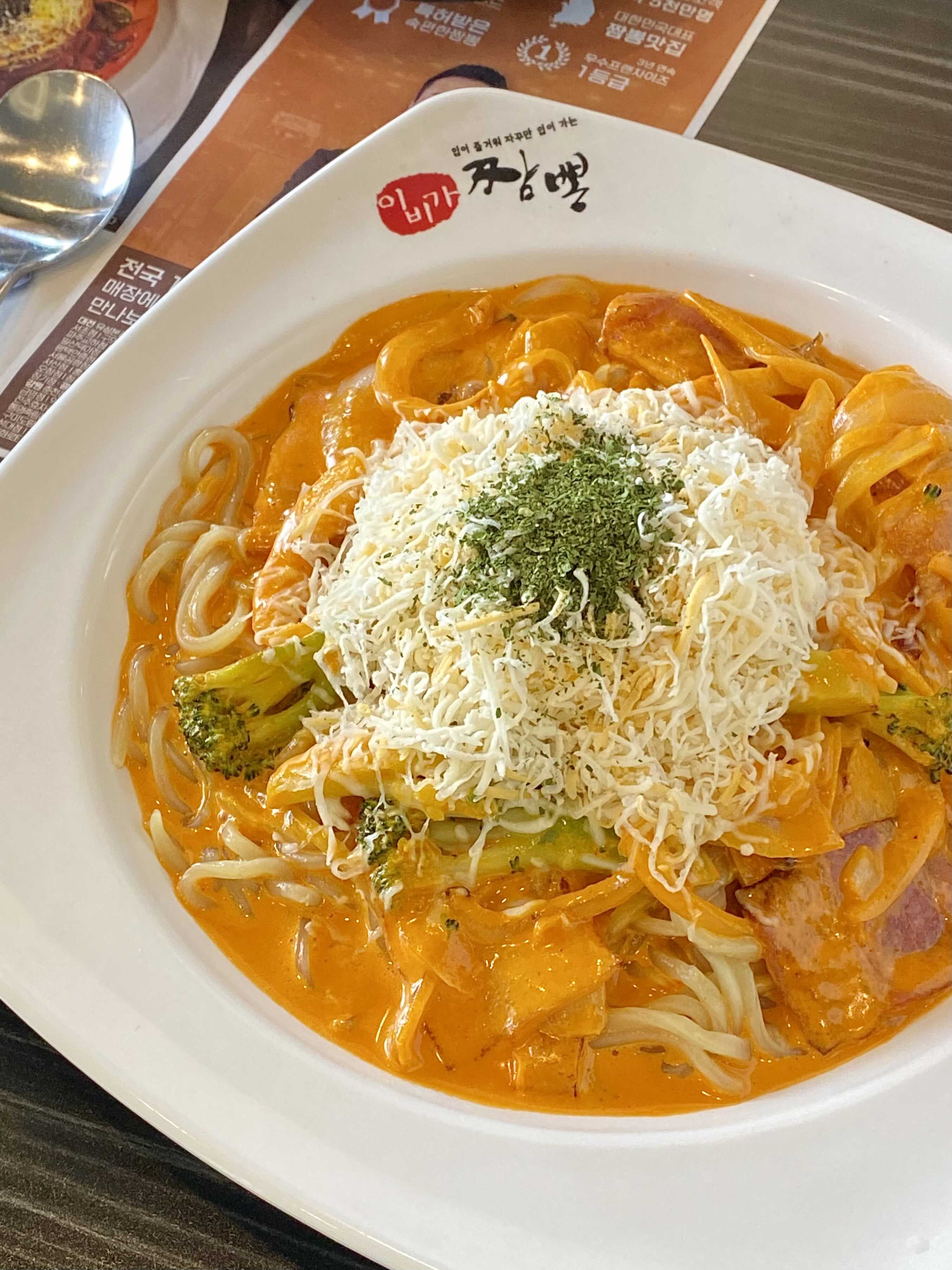 일반 짬뽕처럼 국물이 많은 건 아니고 약간 파스타의 형태였어요. 꾸덕꾸덕한 소스에 위에 올라간 치즈까지 먹음직스러워 보이더라고 요.