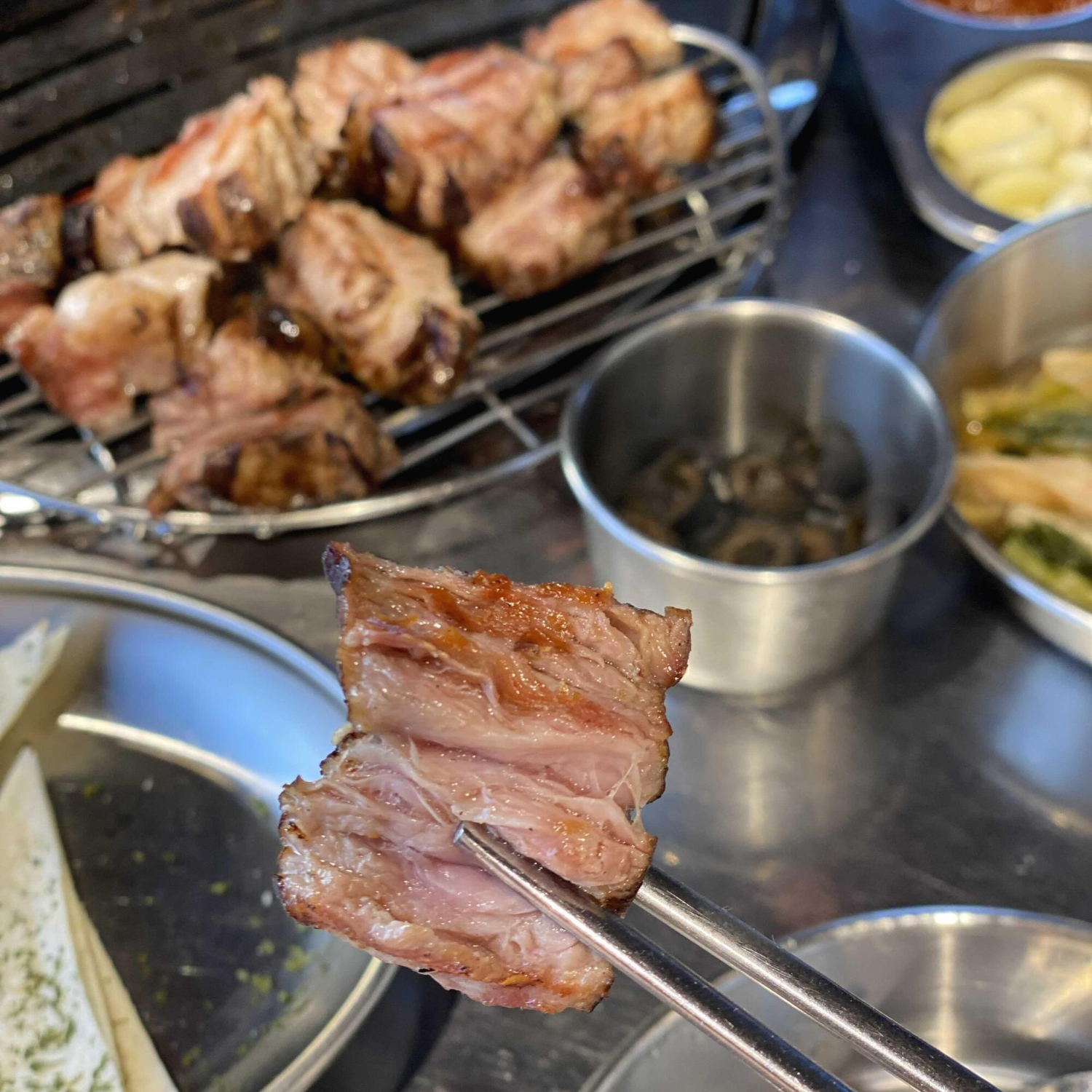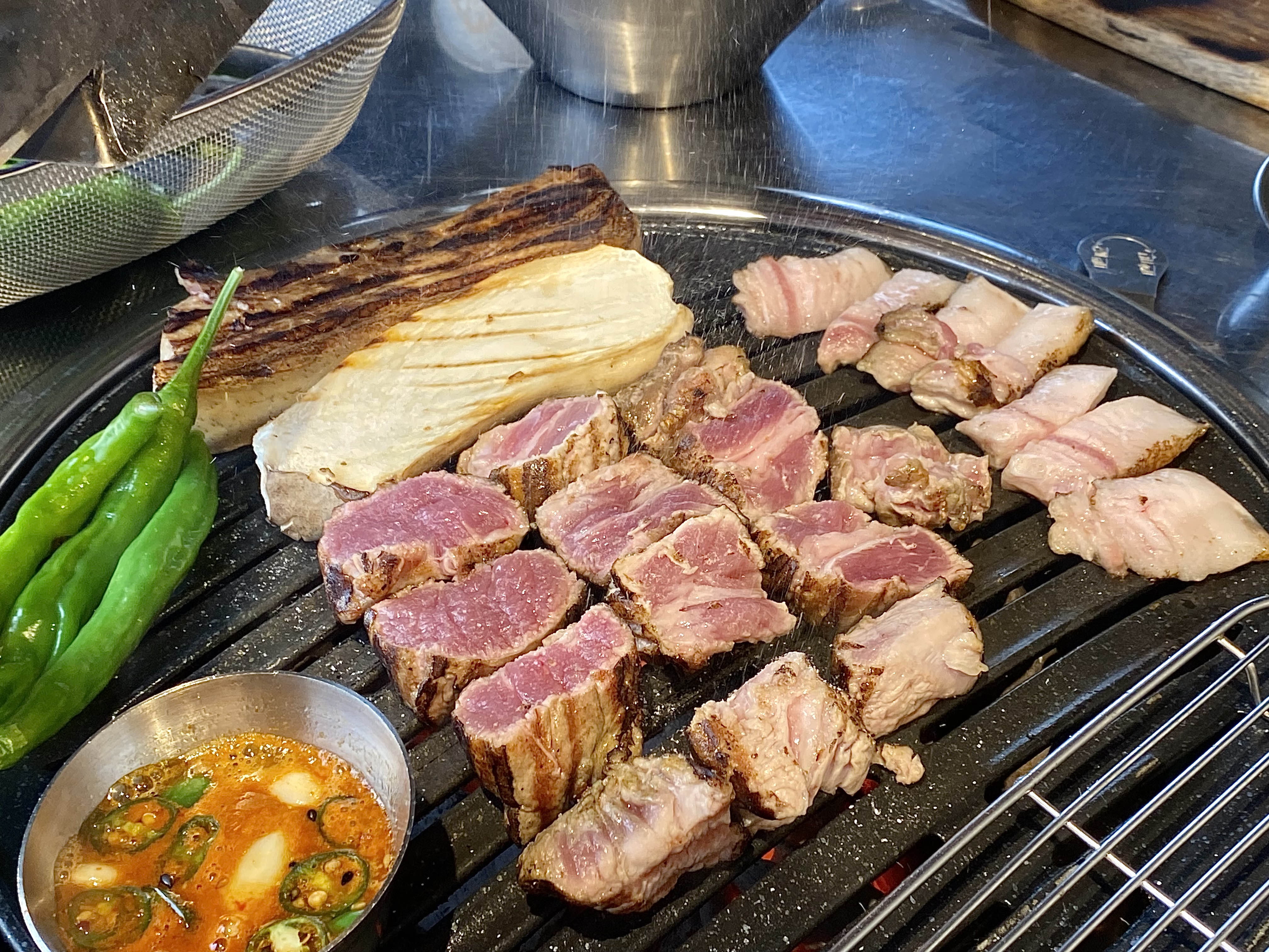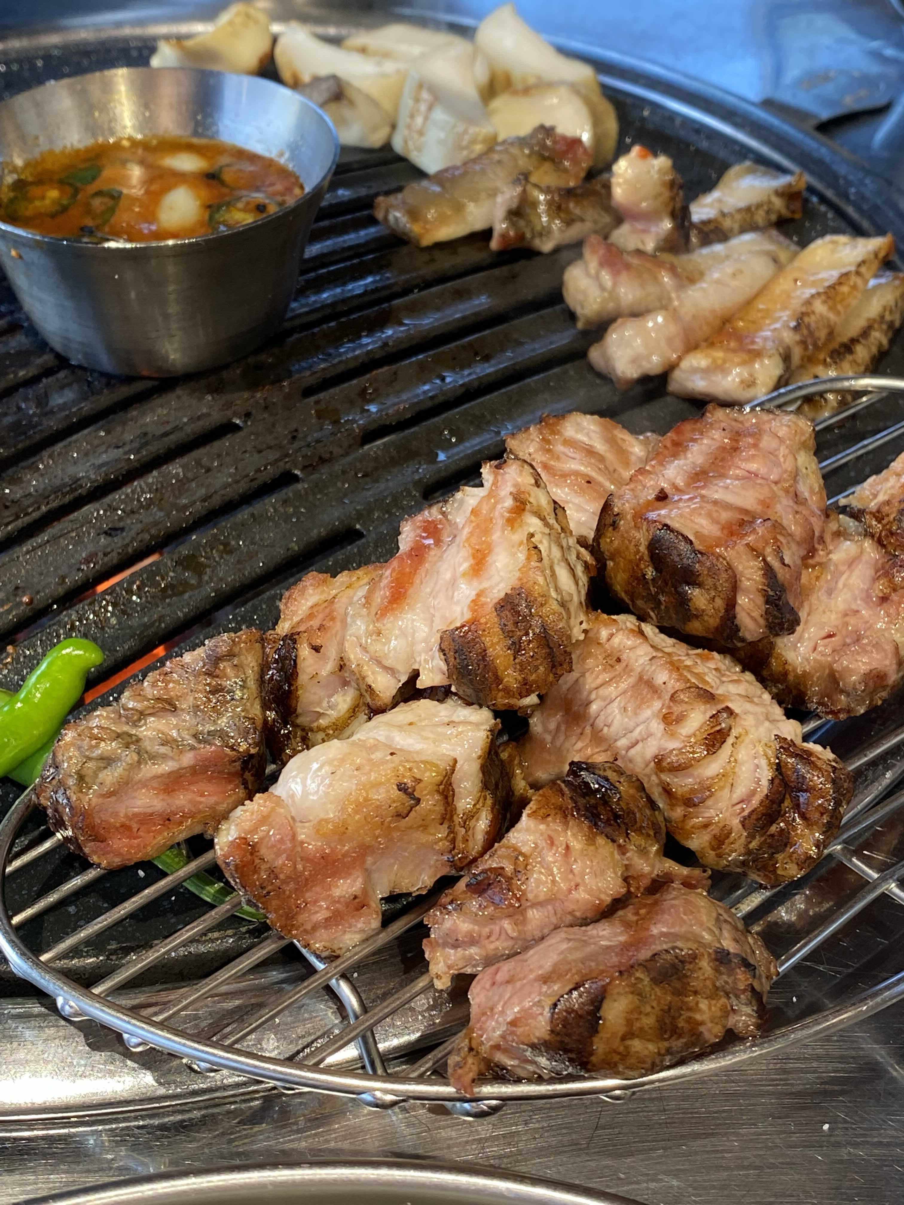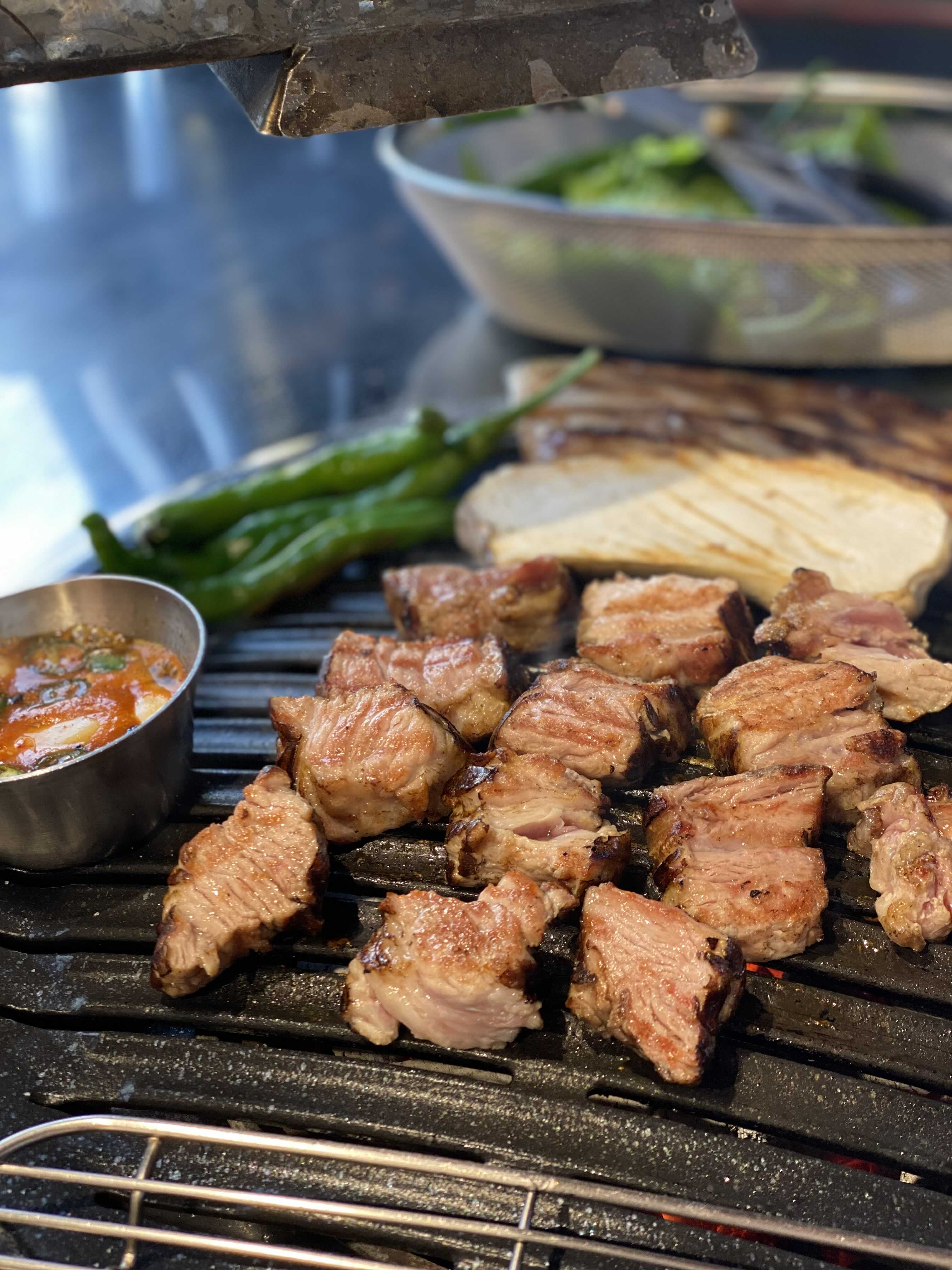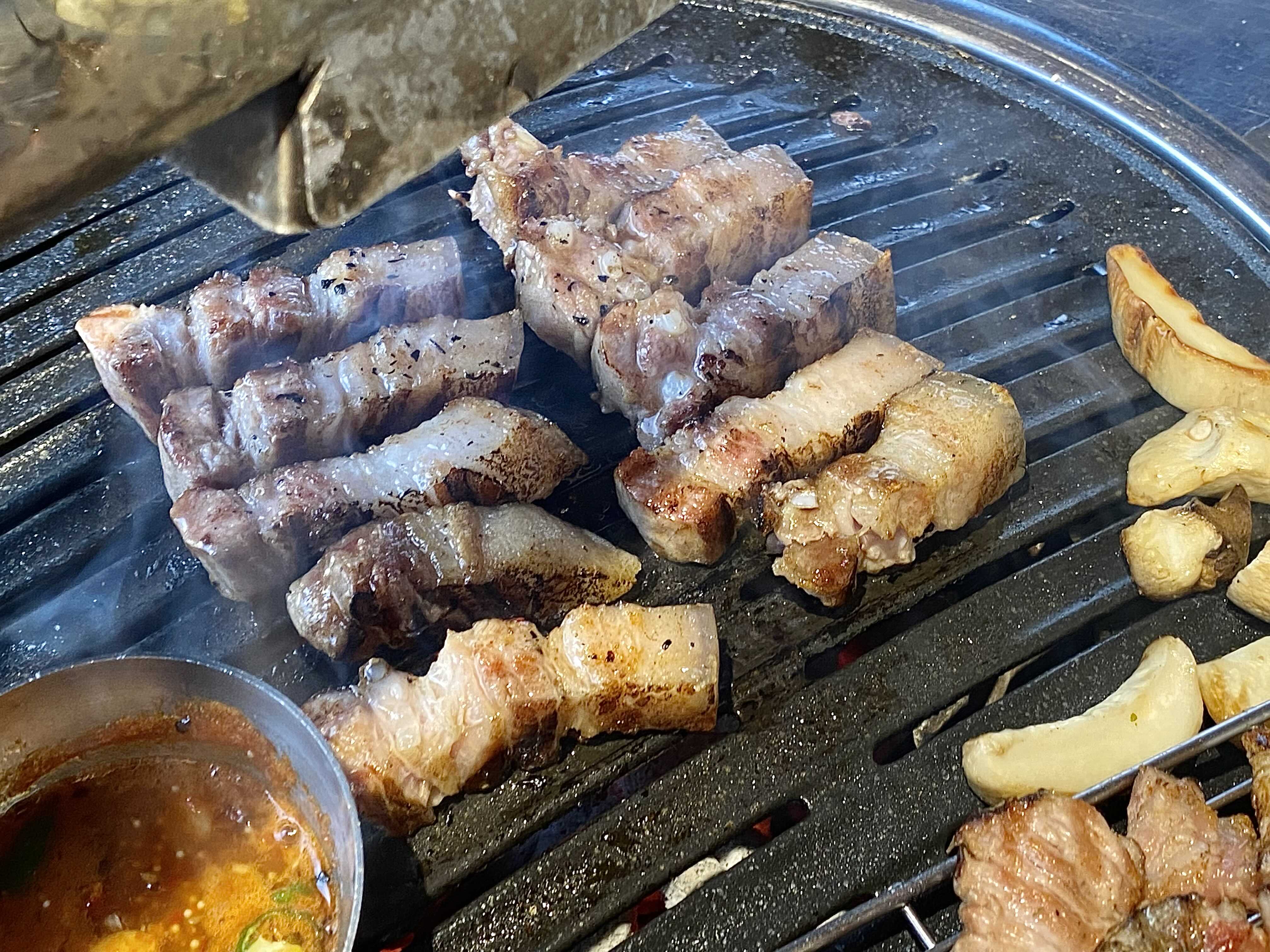 목살부터 굽고 오겹살을 구워주셨는데요. 두 가지 모두 맛볼 수 있어 좋더라고요. 육즙이 살아있었던 제주 흑돼지 맛집이었습니다! 무엇보다 이곳의 특별한 점은 바로.....
