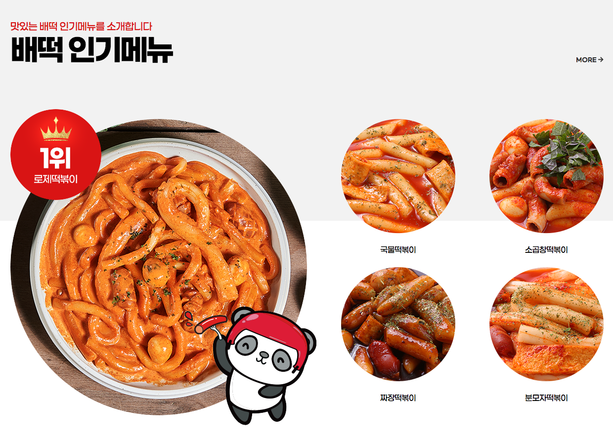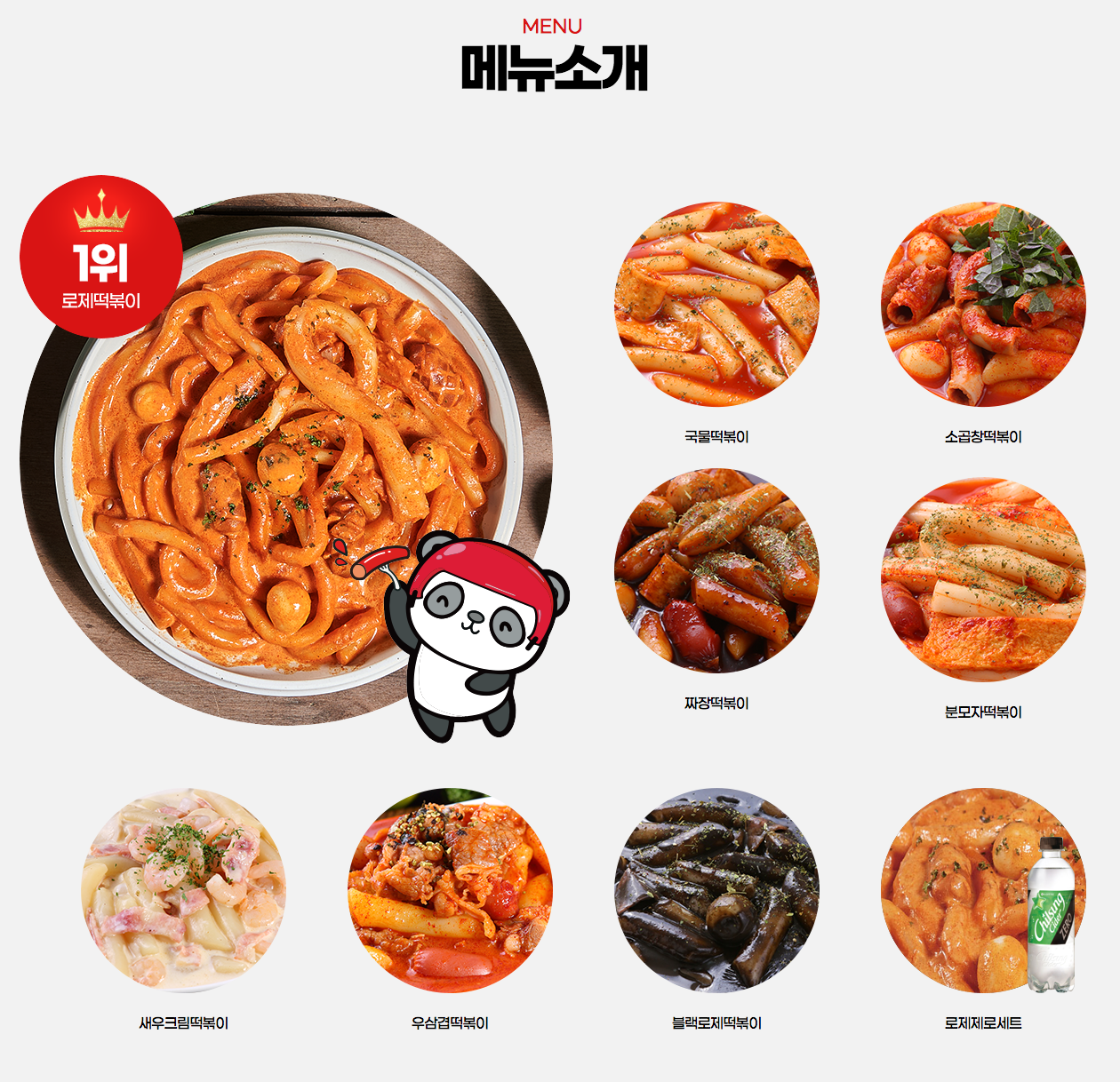 홈페이지에 들어가면 인기메뉴들을 한눈에 살펴볼 수 있는데요. 1위는 바로 제가 먹은 로제떢볶이랍니다. 그리고 국물, 소곱창, 짜장, 분모자가 그 뒤를 잇고 있어요. 맛있게 먹은거라 항상 로제로 시키지만 다음에는 다른 메뉴들도 시켜먹어봐야겠다는 생각이 드네요!