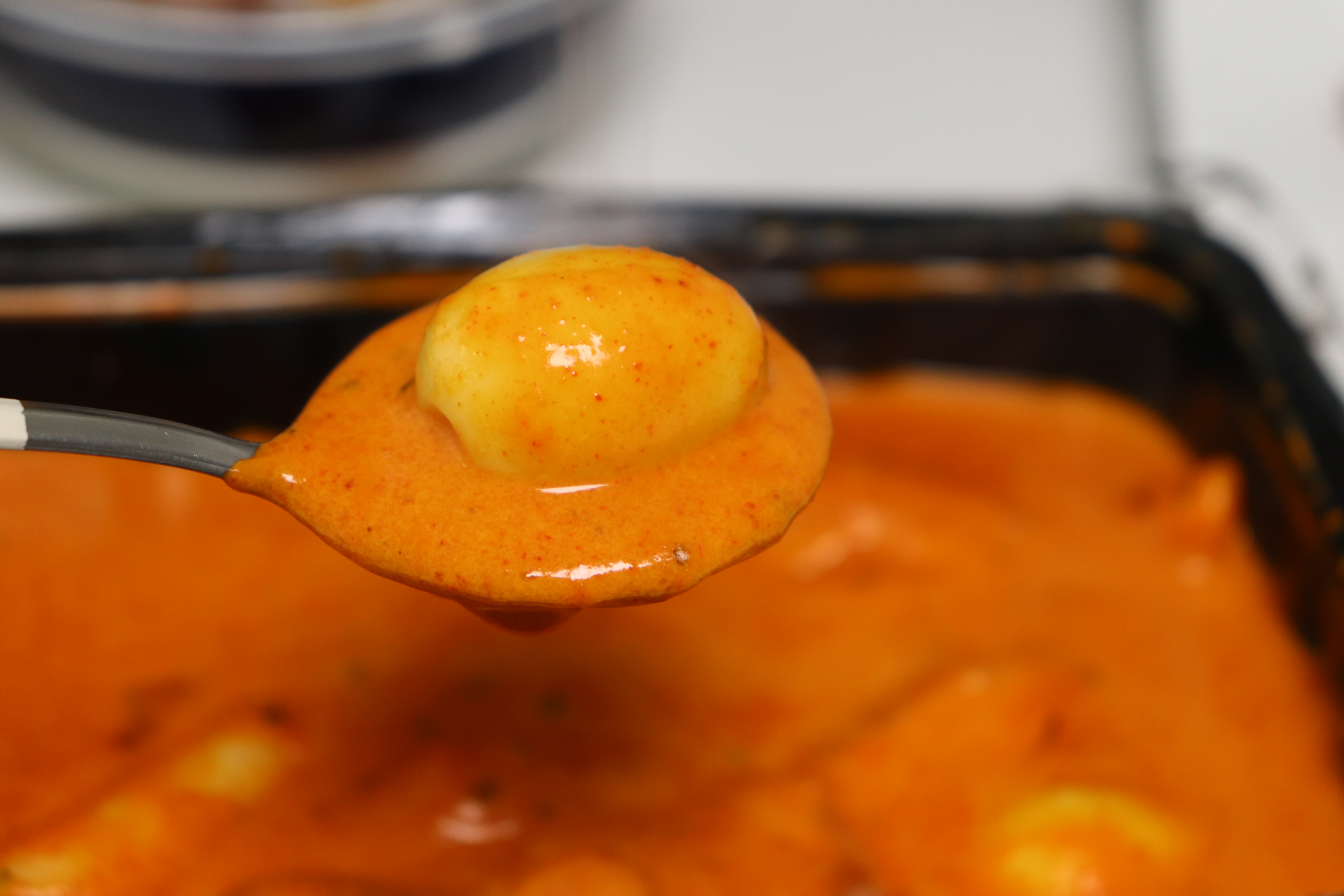 1~2인분이지만 꽤 깊은 용기에 푸짐하게 담겨왔답니다. 안에는 메추리알과 떡, 비엔나소시지, 베이컨 다양하게 기본으로 들어있는데요. 생각보다 로제소스가 많기 때문에 집에서 따로 만두를 굽거나 다른 사리들을 넣어서 함께 찍어먹어도 좋겠다는 생각이 들었답니다!
