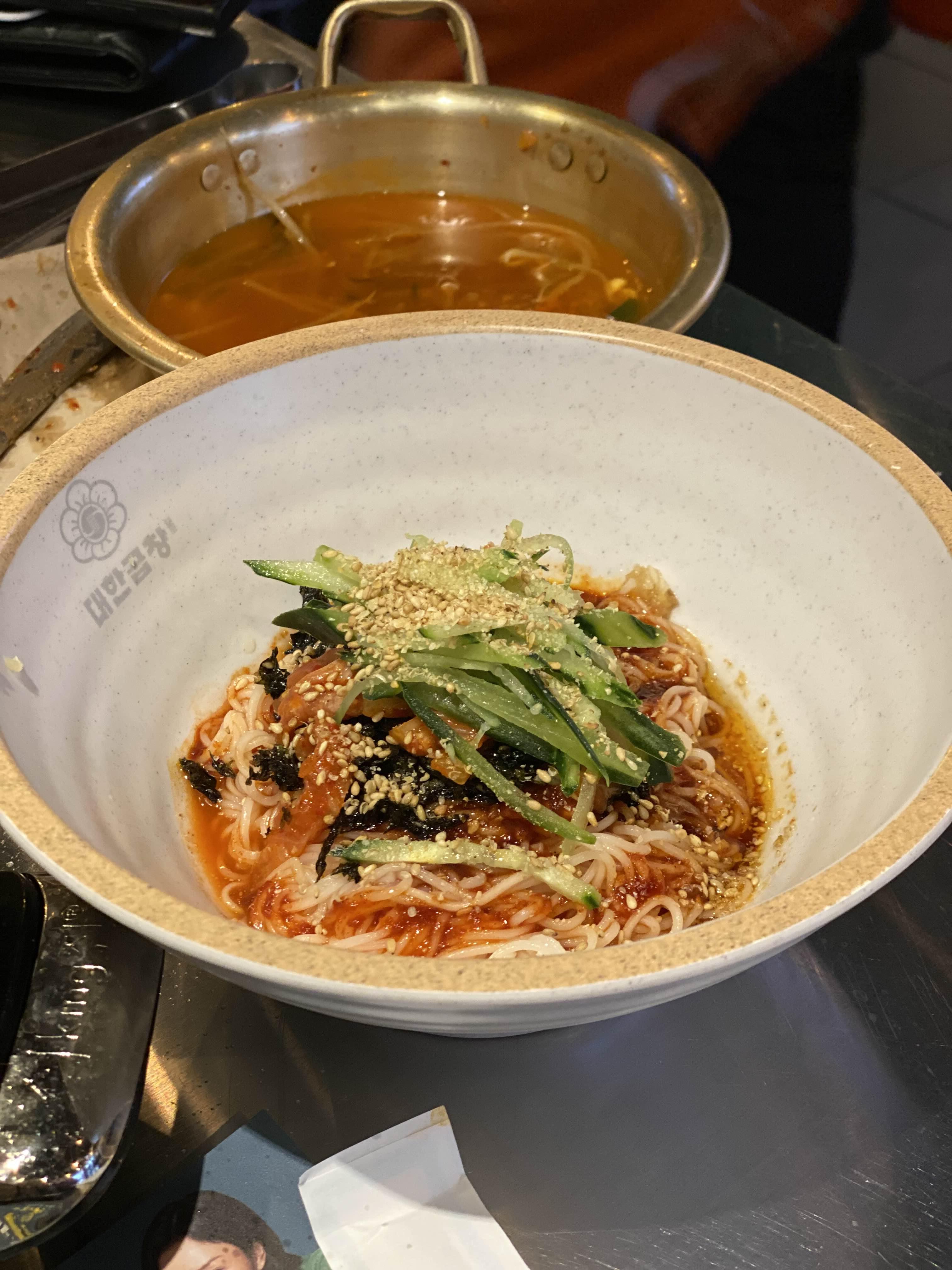 대한곱창에서 곱창을 먹고나면 볶음밥이나 곱창전골을 꼭 먹어주어야 하는데요...! 이날은 가볍게 비빔국수 하나 시켜보았답니다.