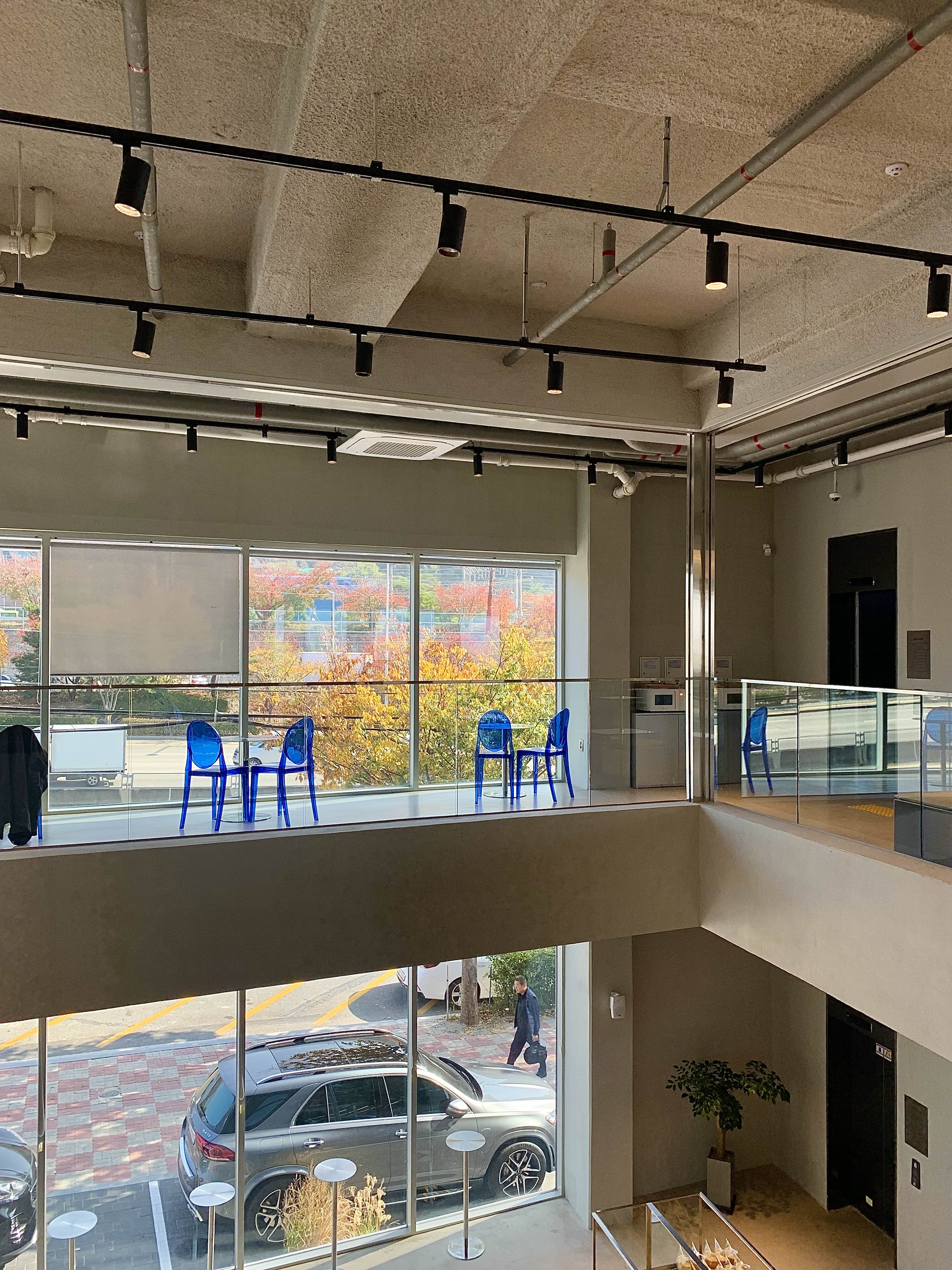 2층으로 올라가는 계단에서 찍어본 사진인데요. 요즘 단풍이 드는 철이라 그런지 바깥 풍경이 더욱 예쁘게 느껴져요!