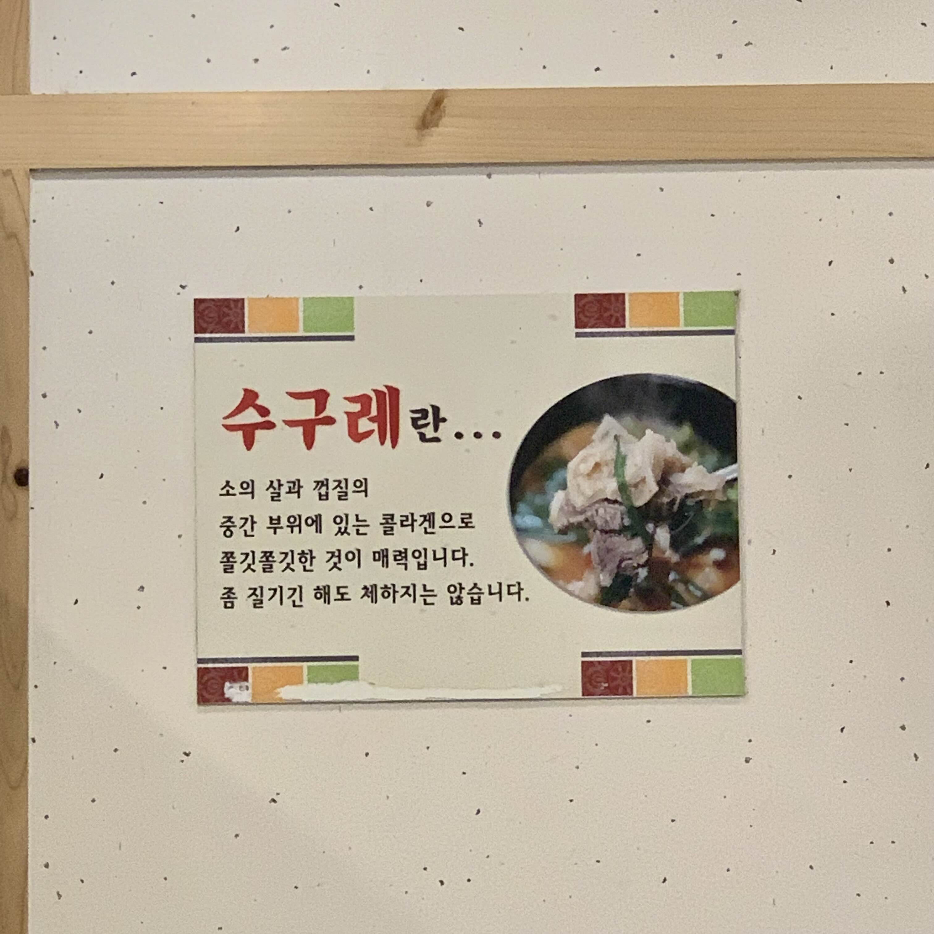 소의 살과 껍질의 중간 부위에 있는 콜라겐인데요. 쫄깃쫄깃한 식감이 매력적이랍니다. 조금 질기다고 느껴질 수도 있으나 맛있어요!
