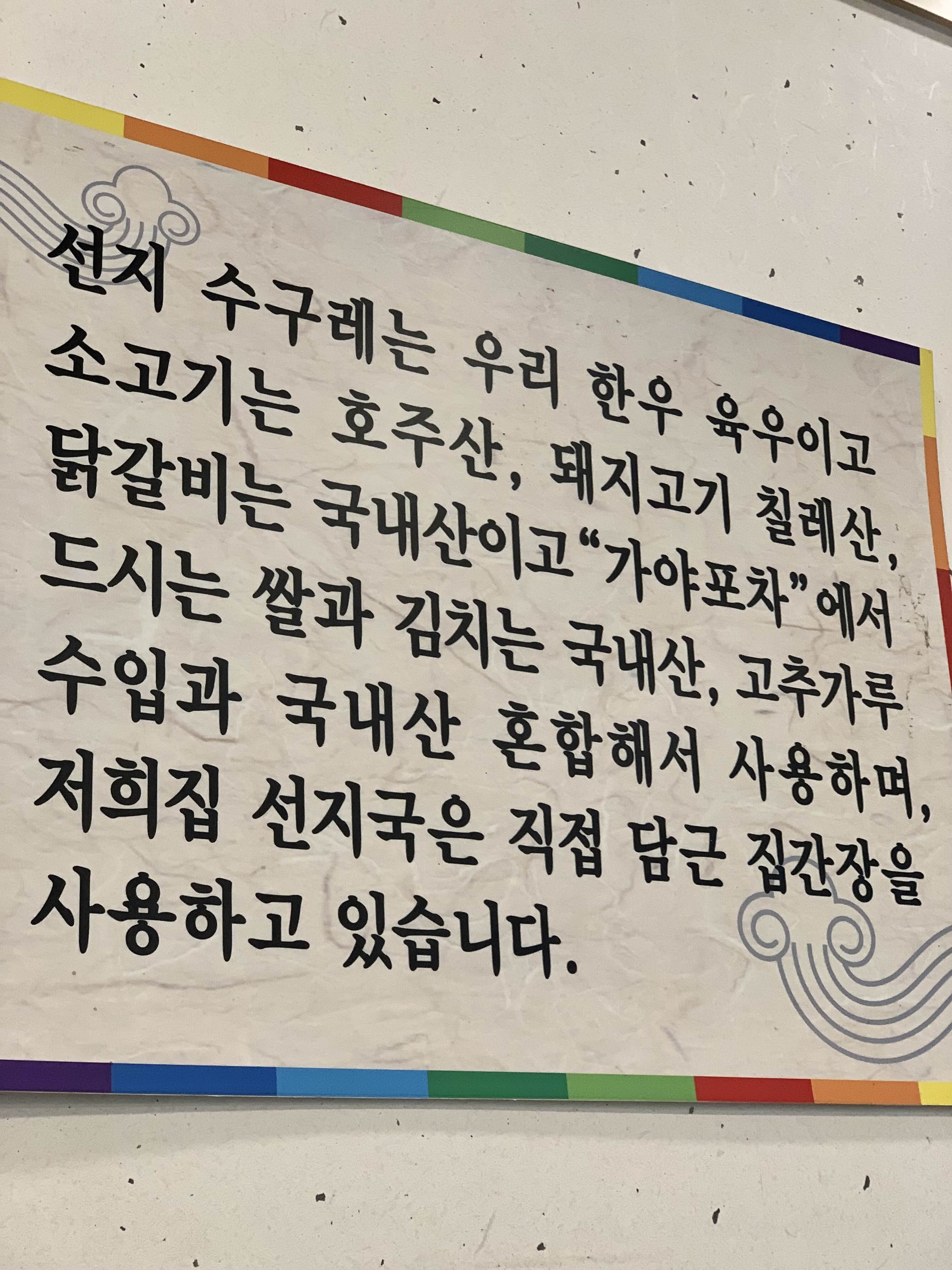 참고로 부산 화명동 가야포차에서는 선지 수구레는 한우 육우, 소고기는 호주산, 돼지고기는 칠레산, 닭갈비는 국내산, 다양한 반찬까지 원산지가 나와있어 믿고 먹을 수 있었어요.