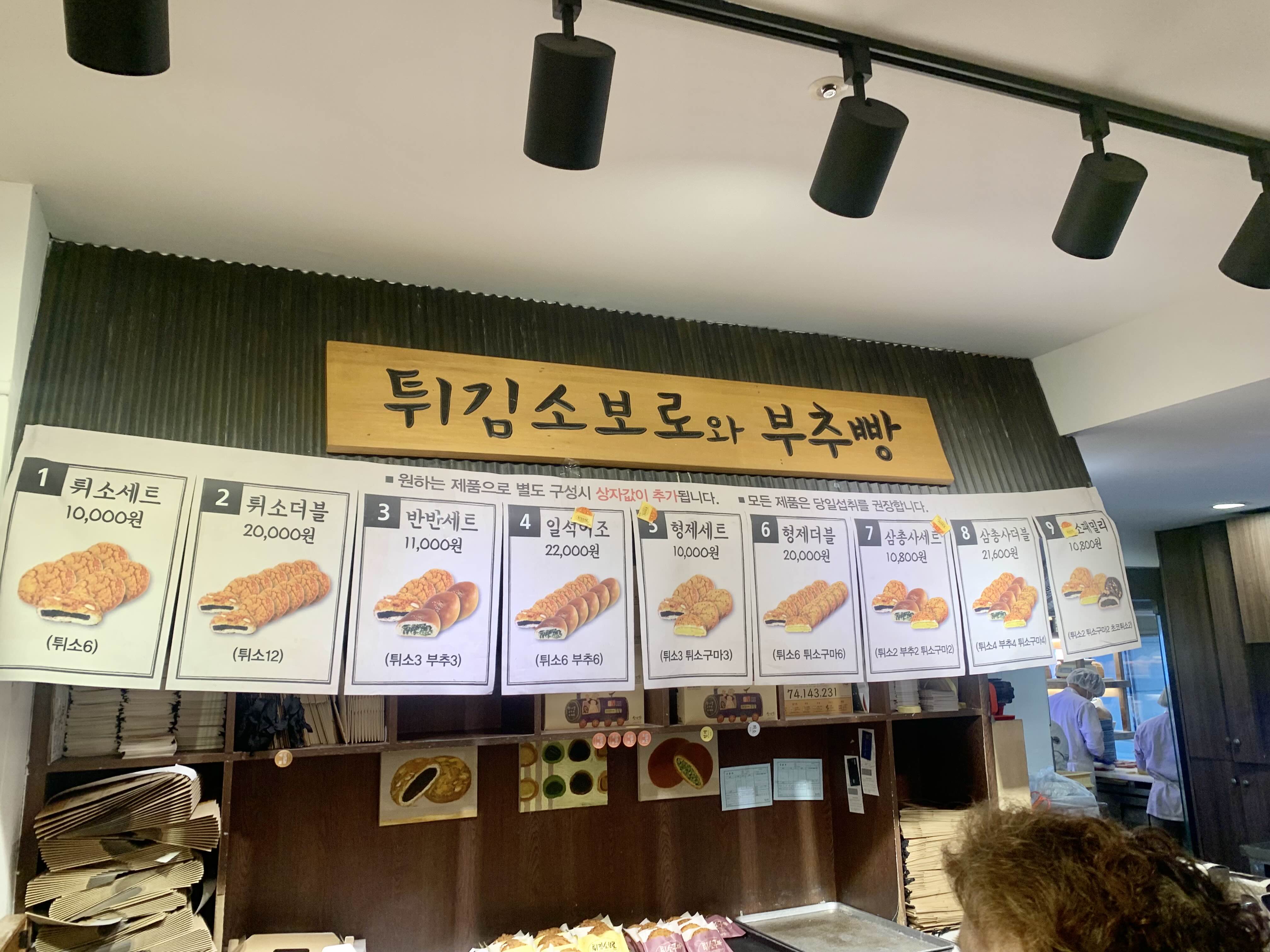 튀김소보로는 별도로 선물세트처럼 판매하고 있었는데요. 빵 코너 옆에 따로 위치하고 있어 이것만 사는 분들은 조금 더 빠르게 구입 가능해요. 튀김소보로와 부추빵, 튀김소보로, 튀소구마, 튀소초코까지 있는데 다양한 구성이 있었답니다.