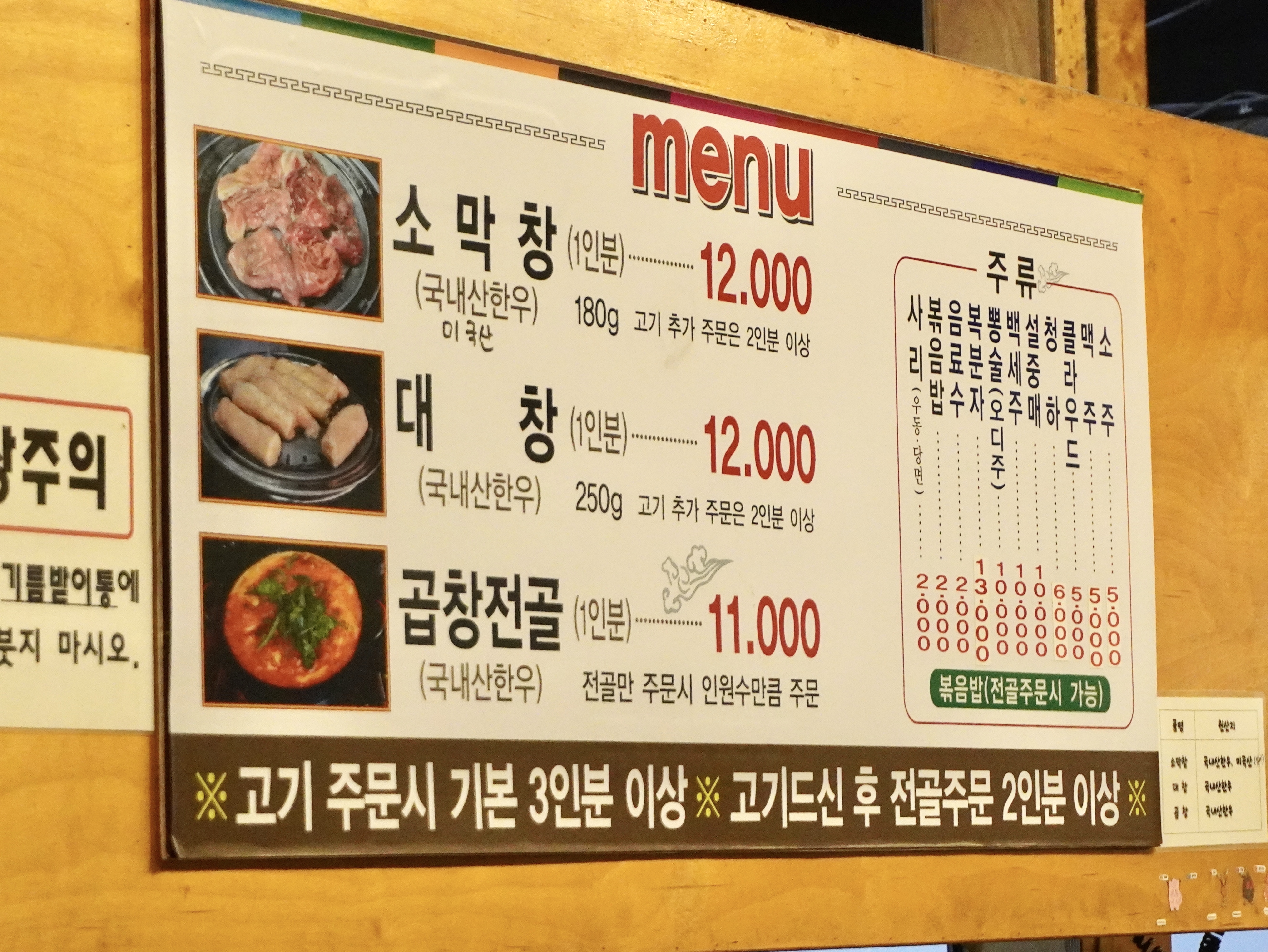 기본 3인분 이상을 시켜야하고, 고기 드신 후 전골주문도 2인분이상이어야해요.