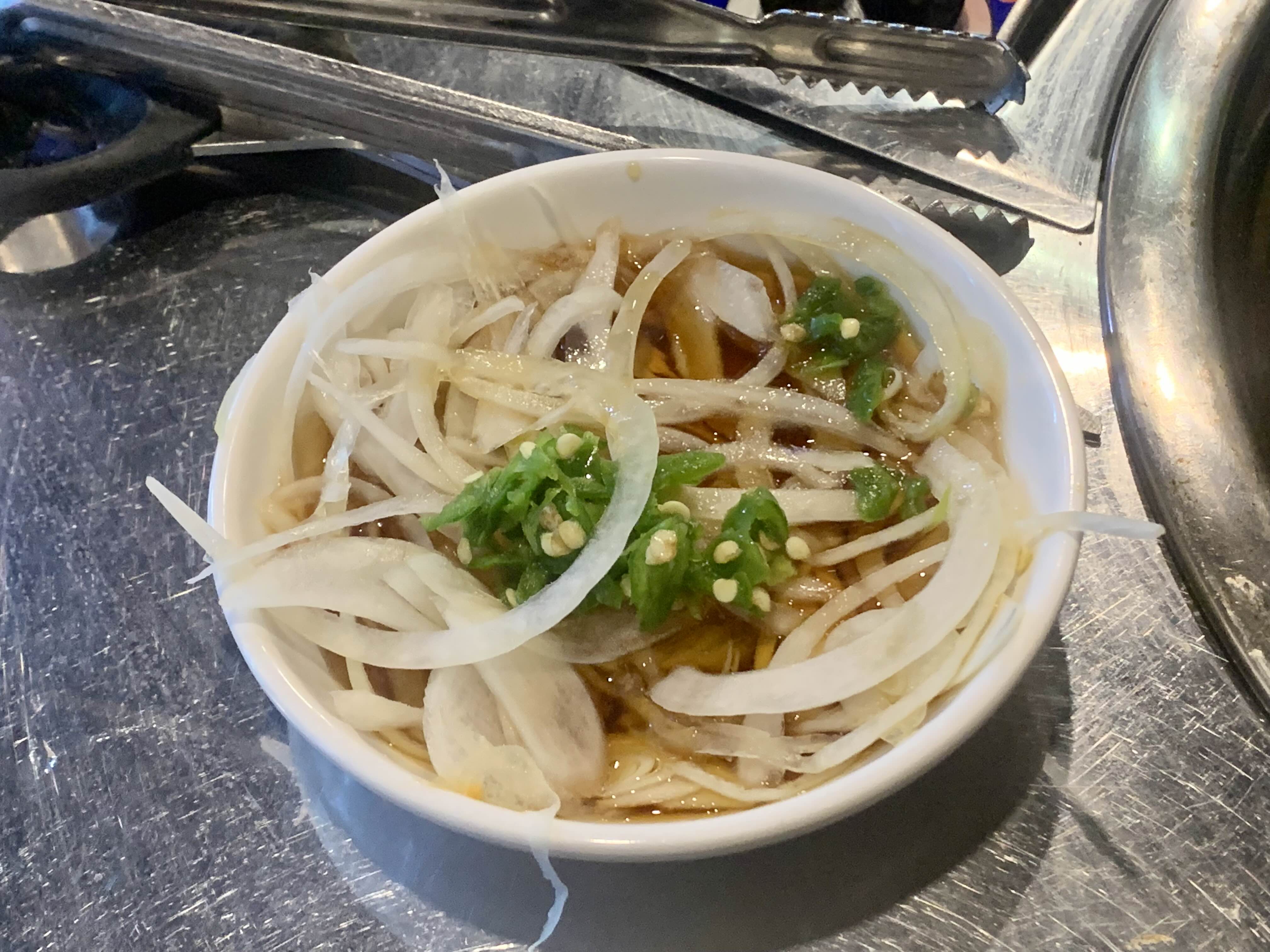 기본 반찬도 꽤 알찬 편이죠. 양파장아찌와 먹어주면 느끼함도 덜어주고 맛있어요.