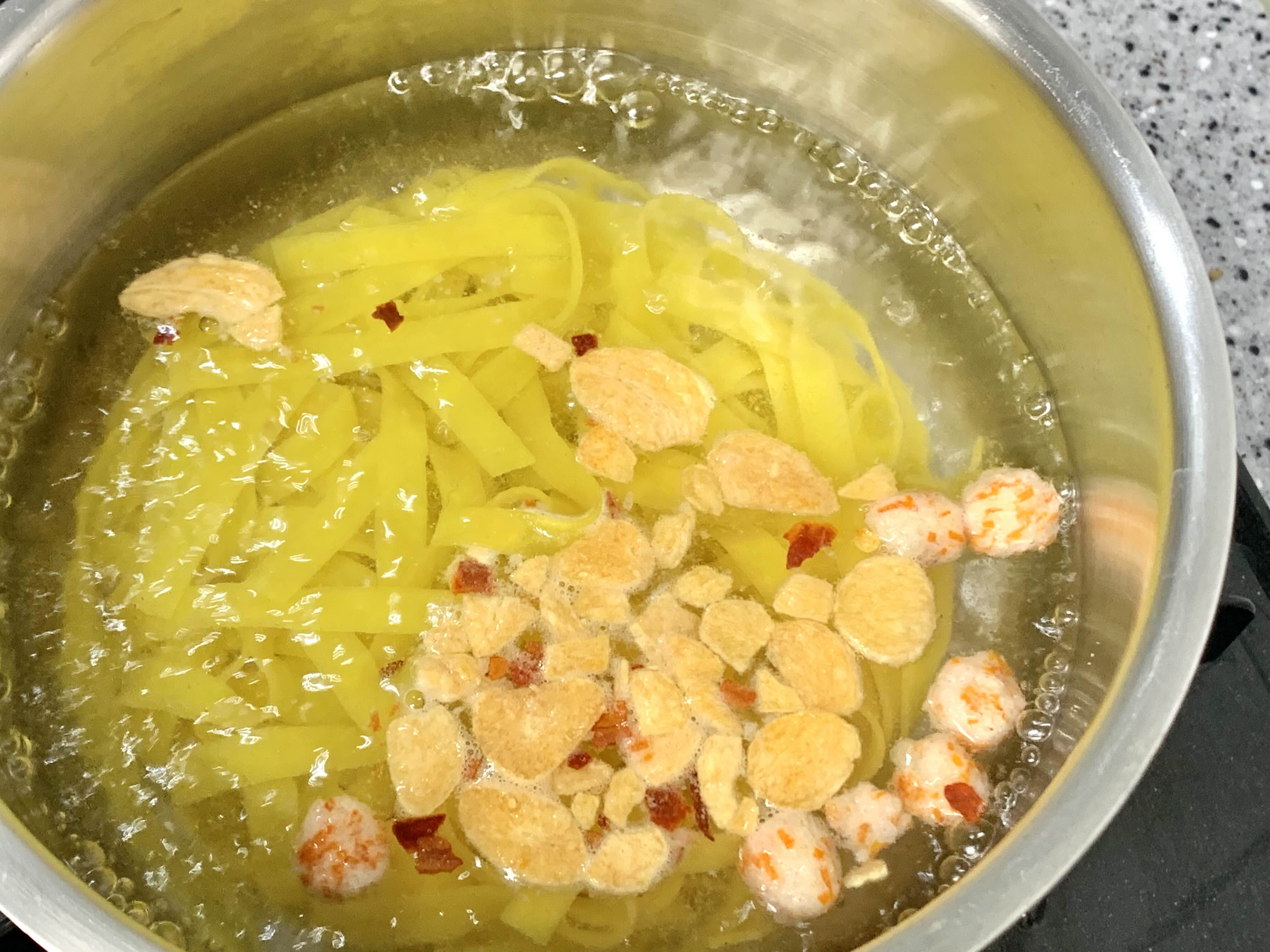 물이 끓고 넣어주었어요. 이대로 3분 30초간 끓여줍니다.