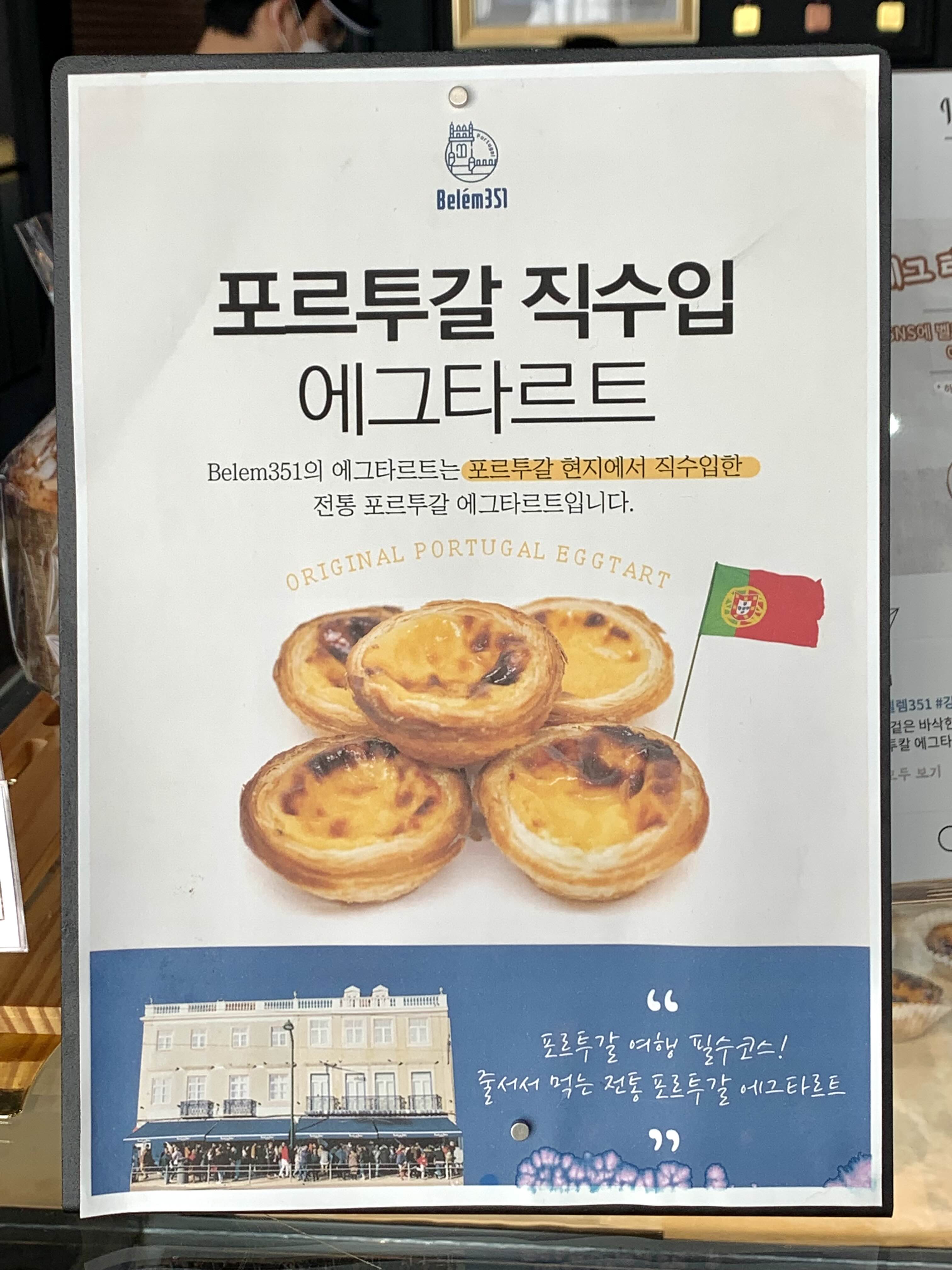 벨렘351의 에그타르트는 포르투갈 현지에서 직수입한 전통 포르투갈 에그타르트라 더욱 맛있게 먹을 수 있답니다.