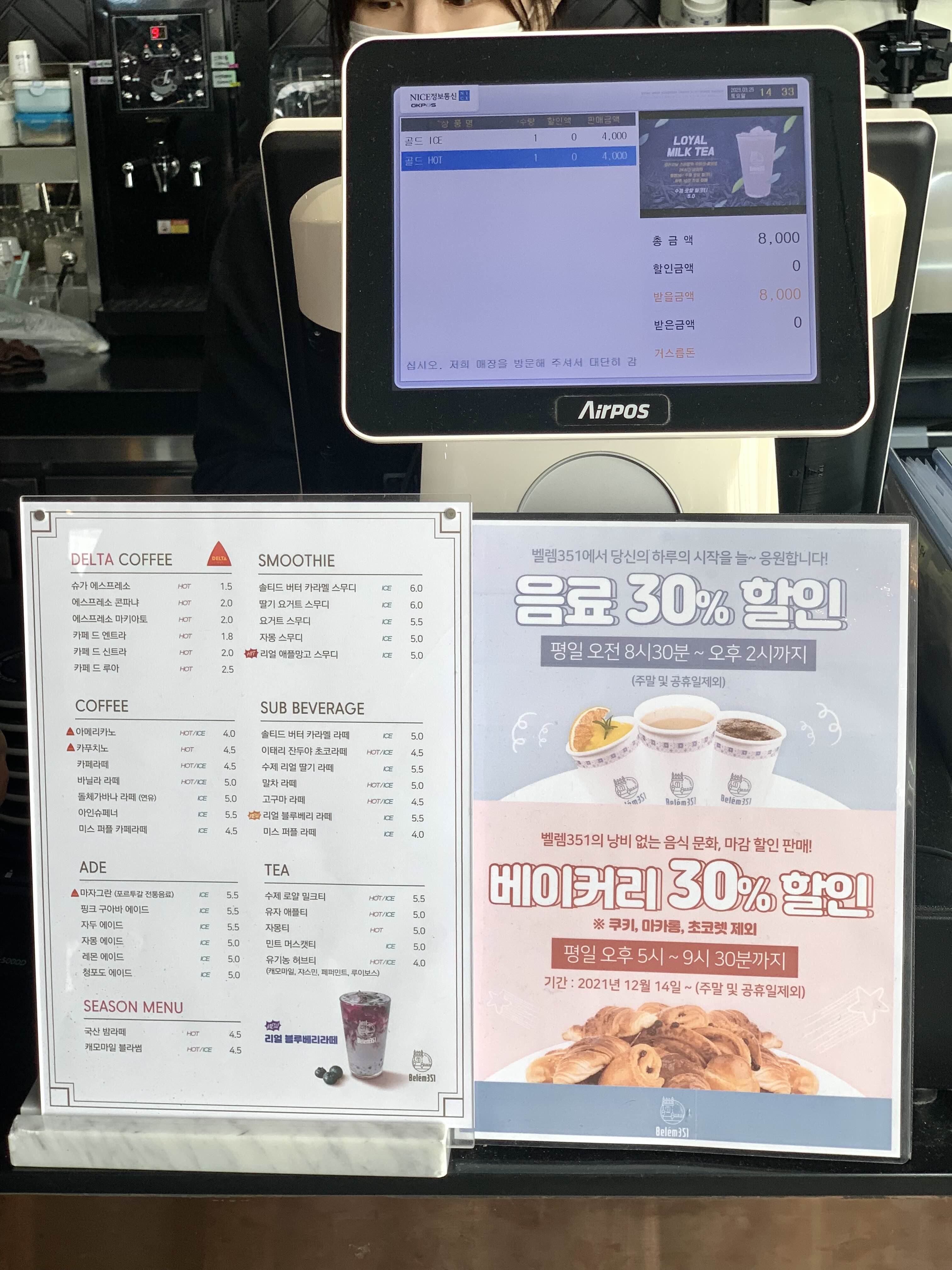제가 시켜본 밤라떼! 아쉽게도 벨렘351에서는 디카페인 커피는 주문을 할 수 없었어요!
