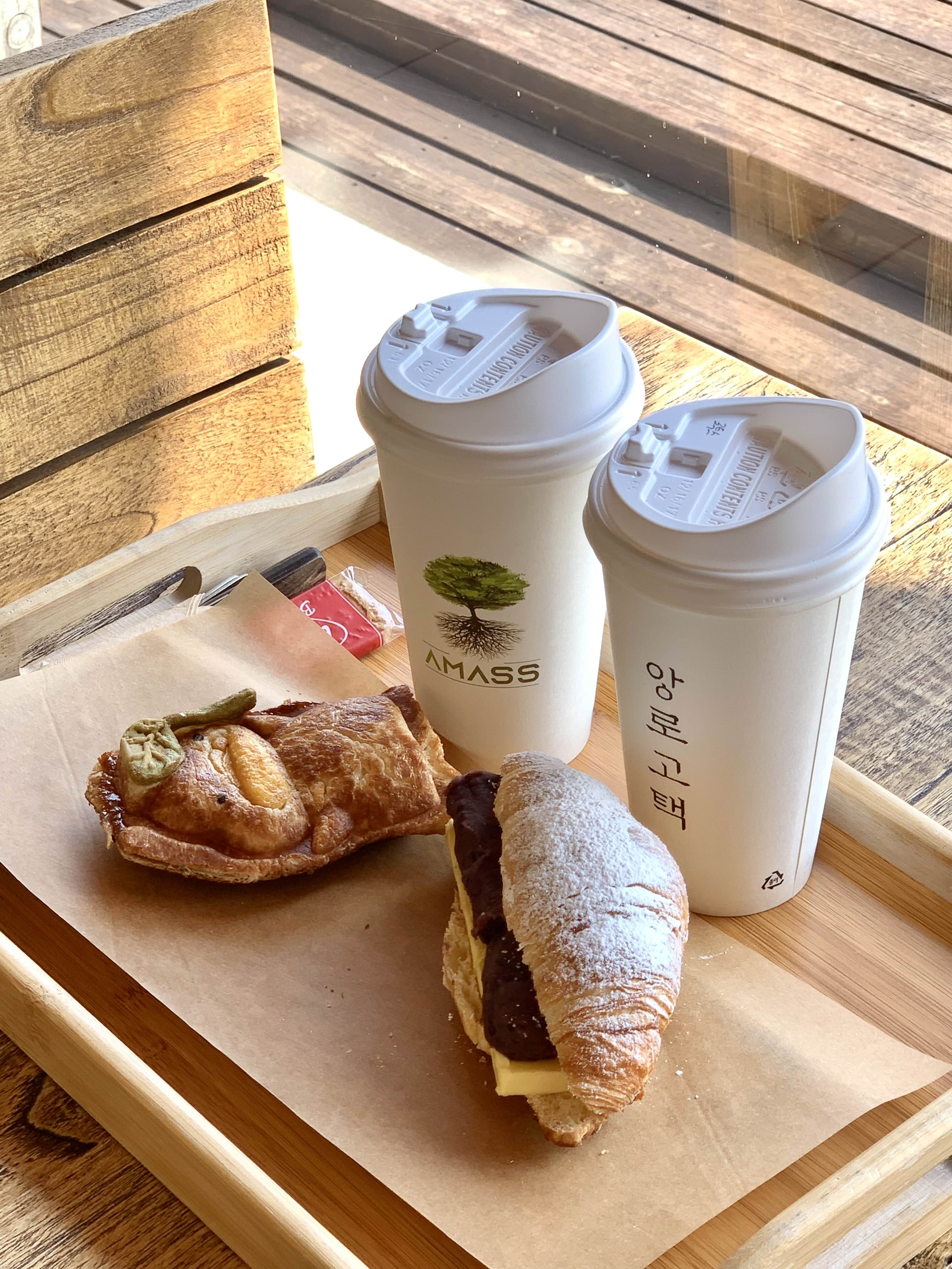 빵 두 개와 음료 두개 구입해 보았어요!