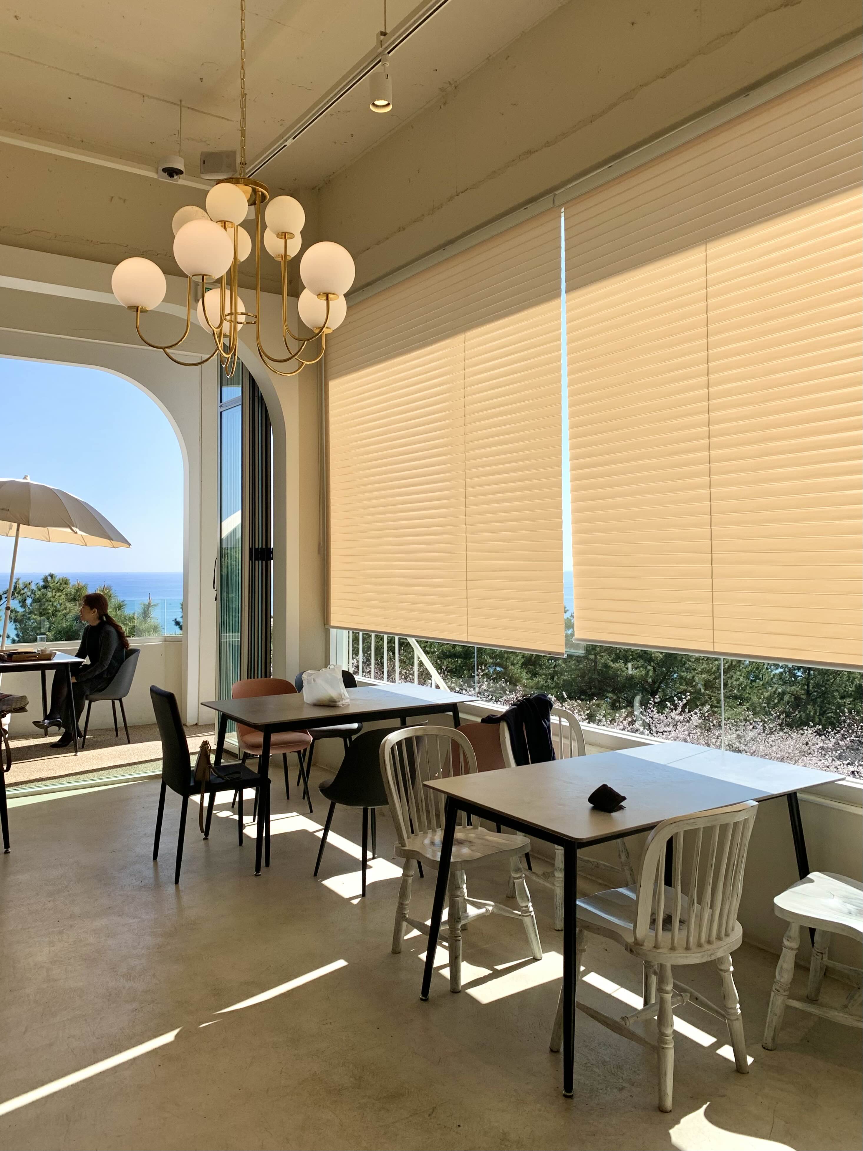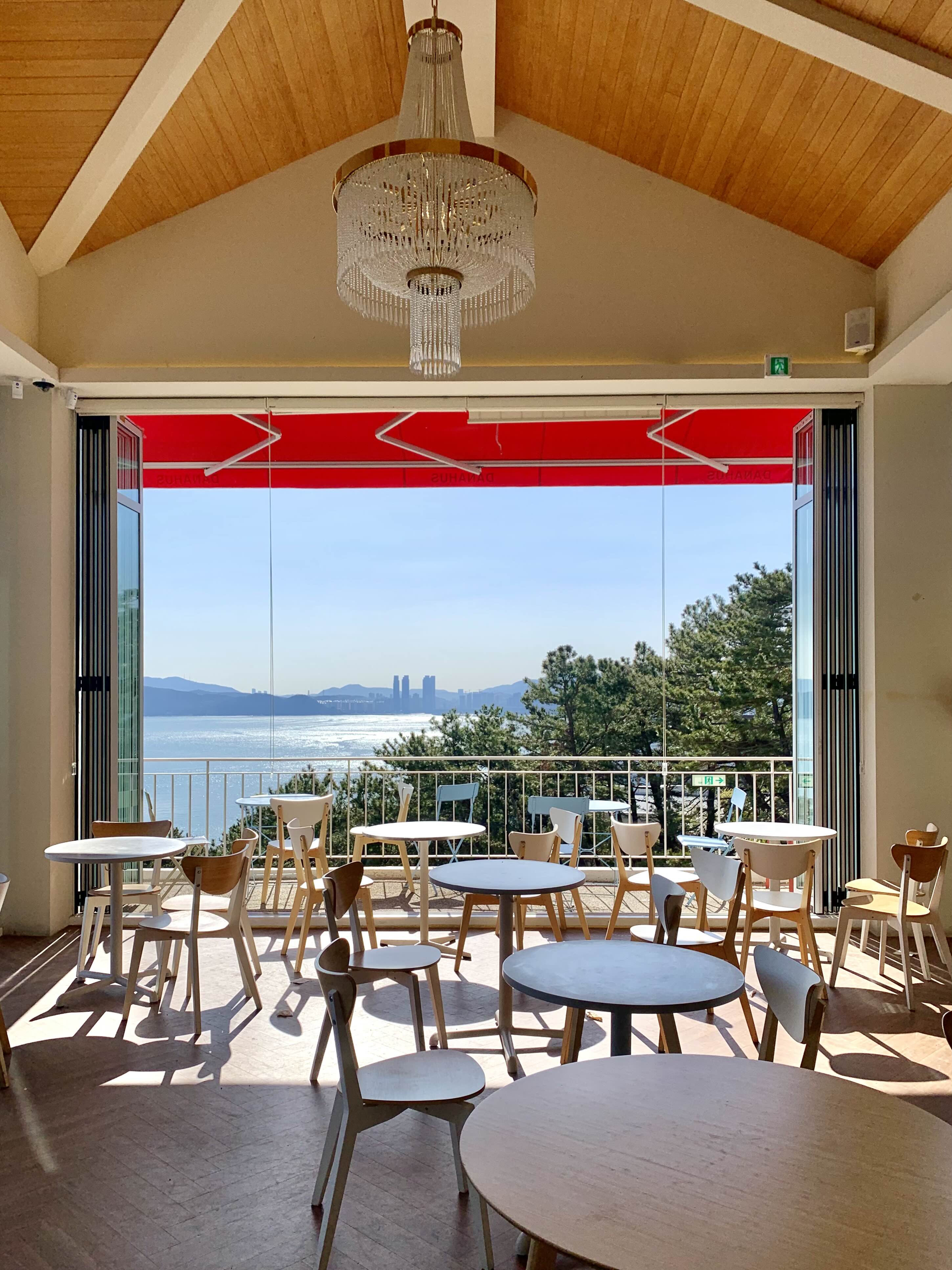 들어가자마자 감탄이 나오던 뷰! 바깥으로 바다가 펼쳐져 멋진 풍경이 눈에 들어오더라고요.