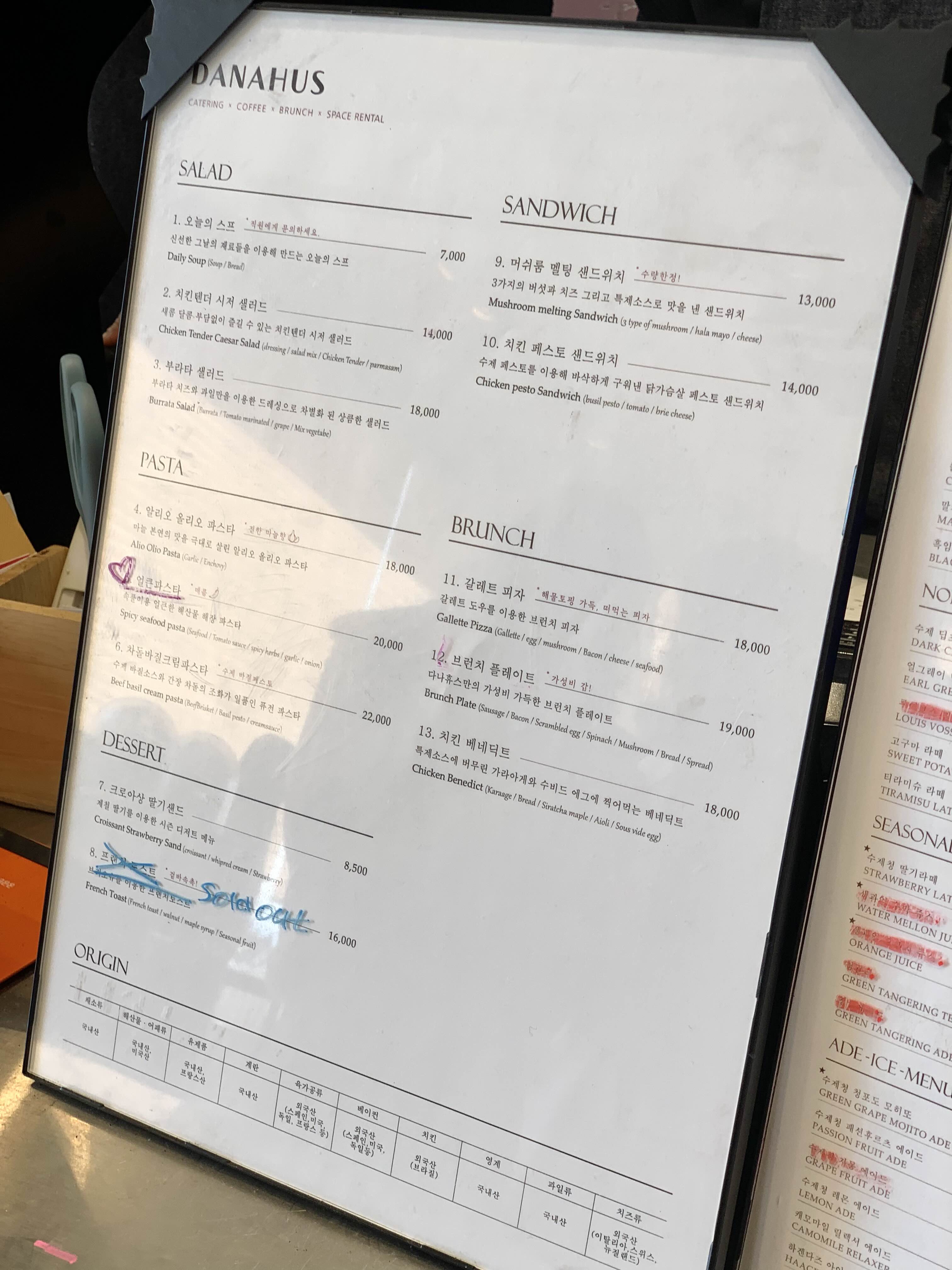 샐러드부터 파스타, 디저트, 샌드위치, 브런치까지 다양하게 있던 해운대 달맞이길 카페 다나휴스! 커피와 티 종류도 있기 때문에 식사뿐만 아니라 잠시 쉬어가기에도 좋은 곳이었어요.