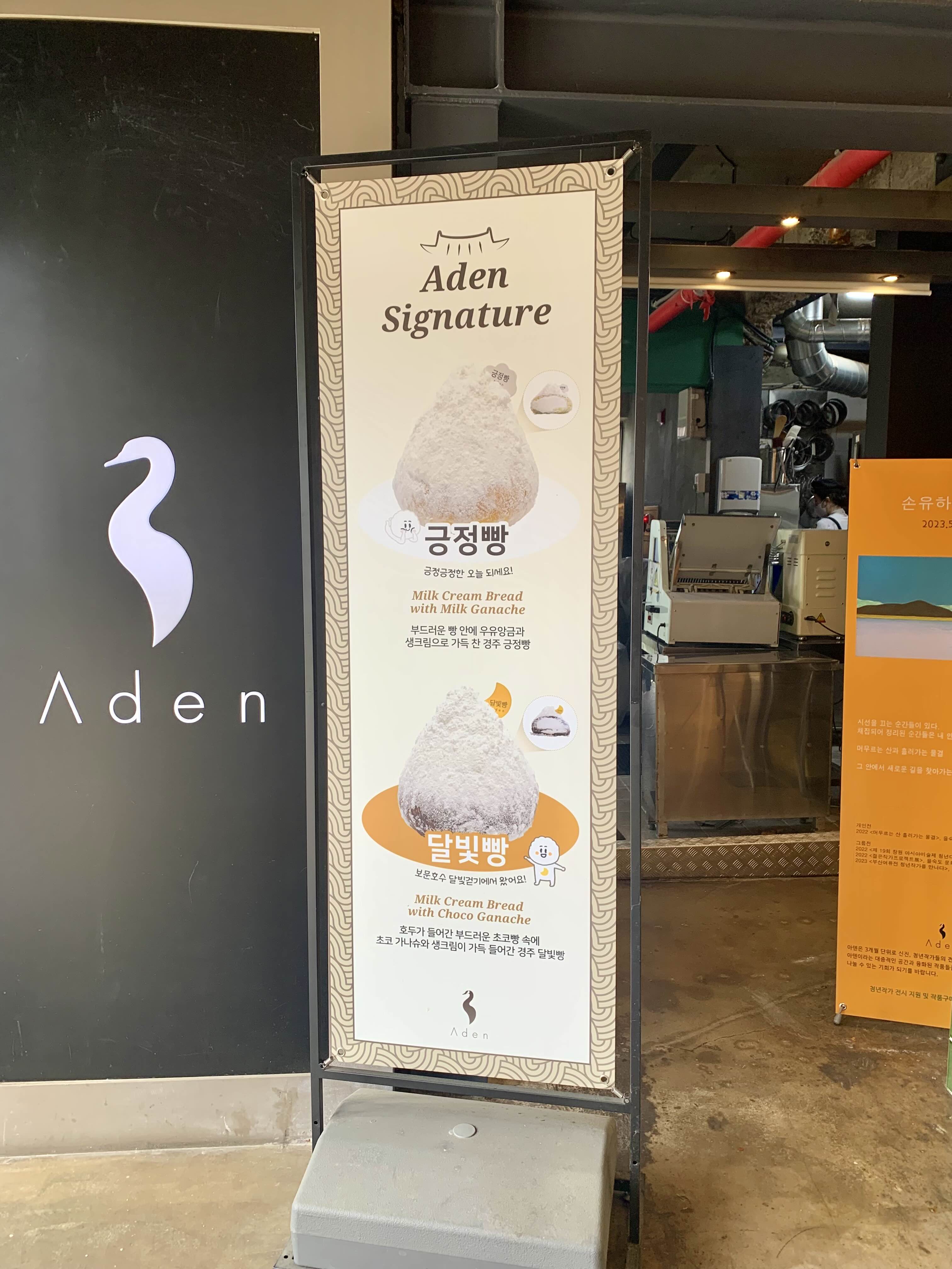 아덴의 시그니처 빵은 바로 긍정빵과 달빛빵이에요. 예전에 다른 지점에서 긍정빵을 맛봤는데 맛있더라고요! 드셔보시는 것도 추천이요~!