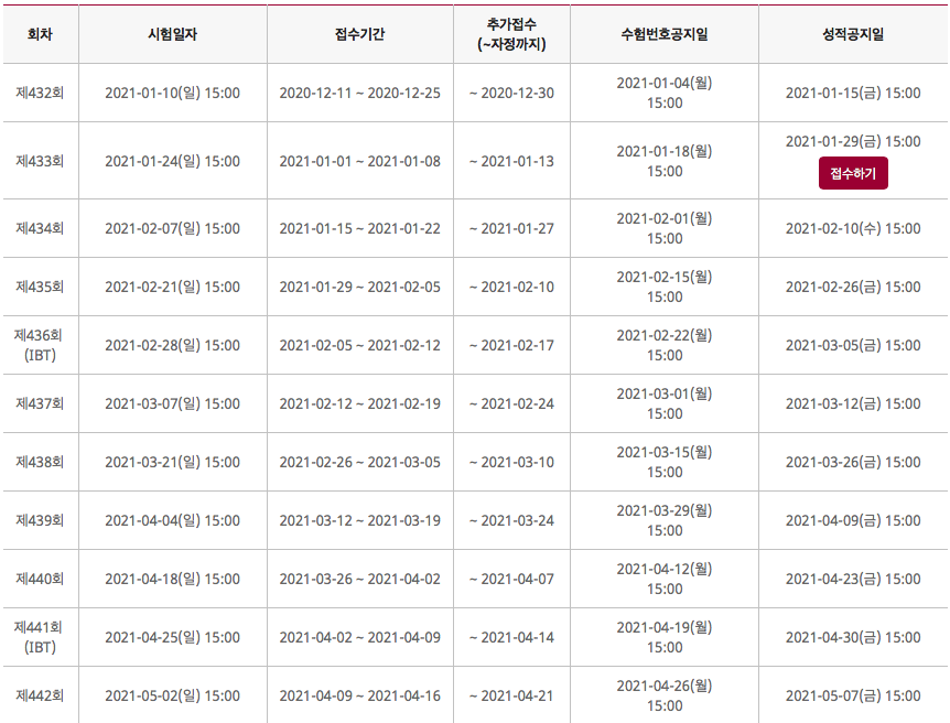 2021년 시험일정