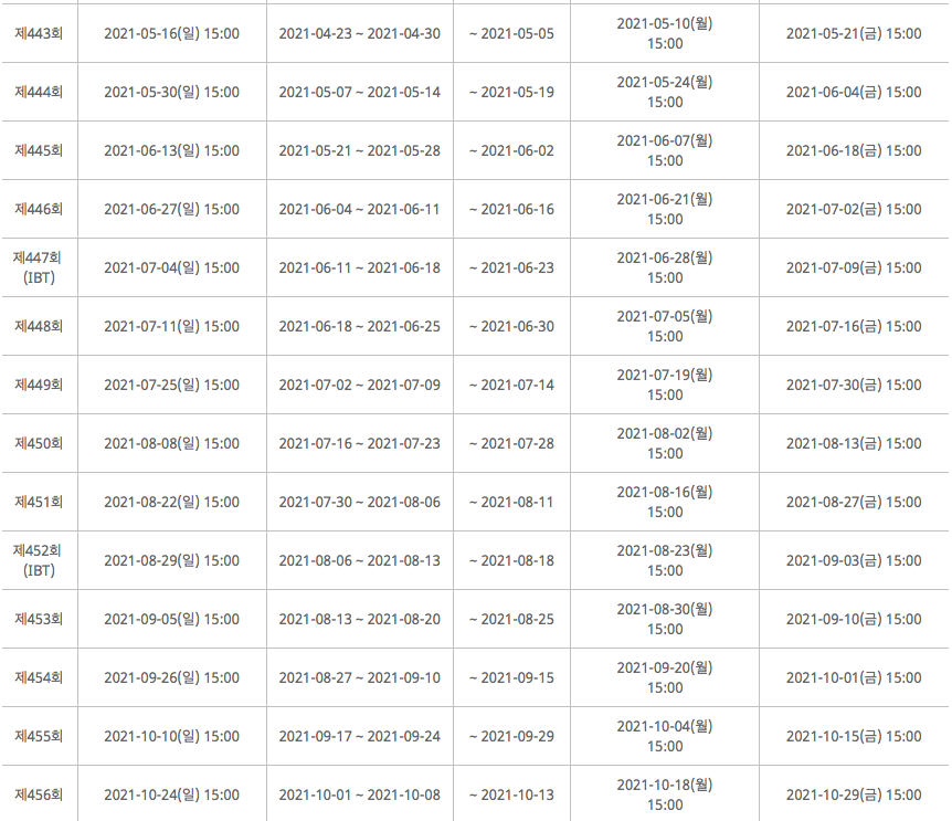 (월요일 시험일 경우 전주 금요일까지 접수 가능하며, 금요일 시험일 경우 같은 주 화요일까지 접수 가능합니다.)