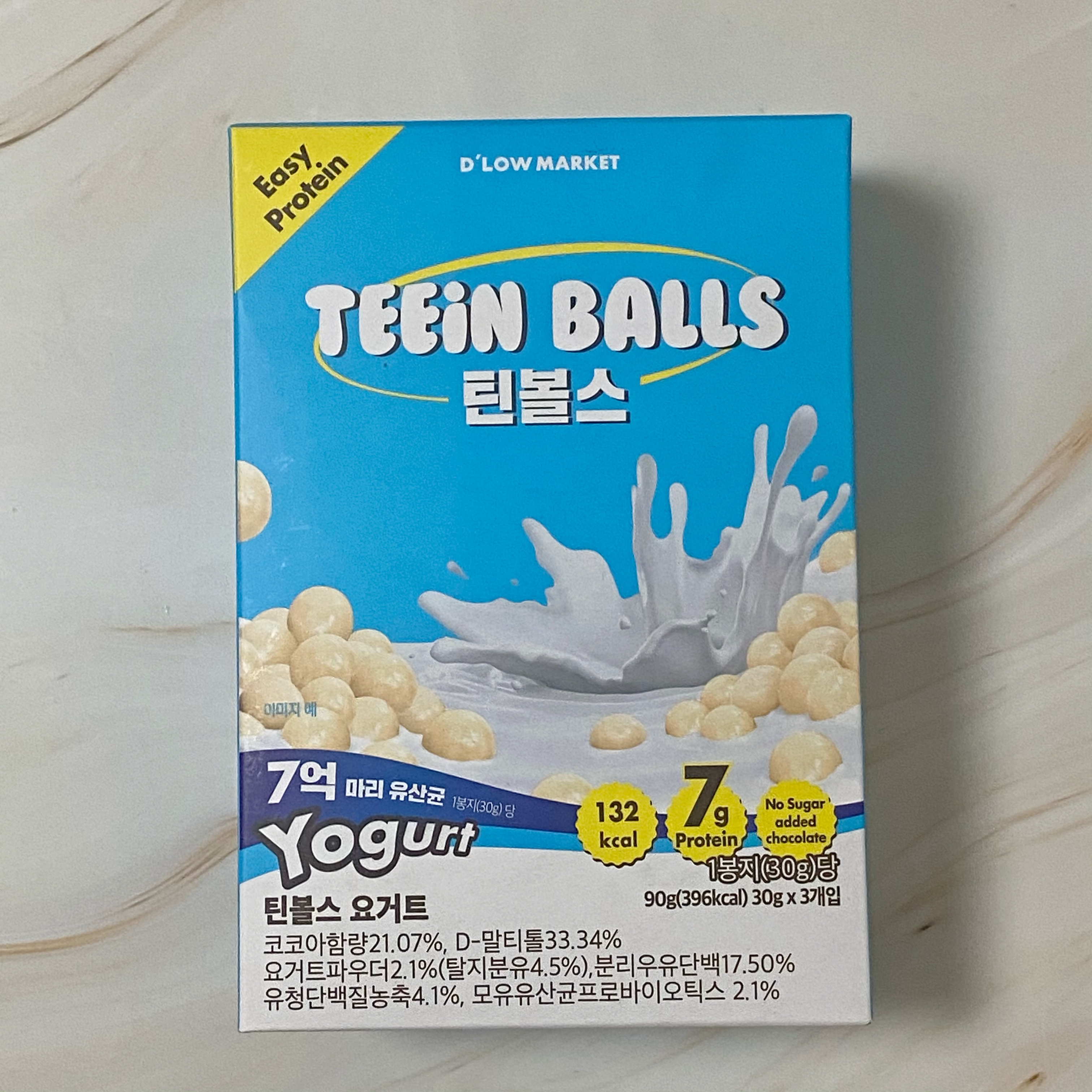 다이어트 간식의 경우 양도 중요하고 성분도 중요한데, 이 틴볼스 요거트는 가벼운 양에 유산균, 단백질까지 들어있는 알찬 영양성분이라 식단관리나 운동 후에도 먹기 좋을듯합니다.
