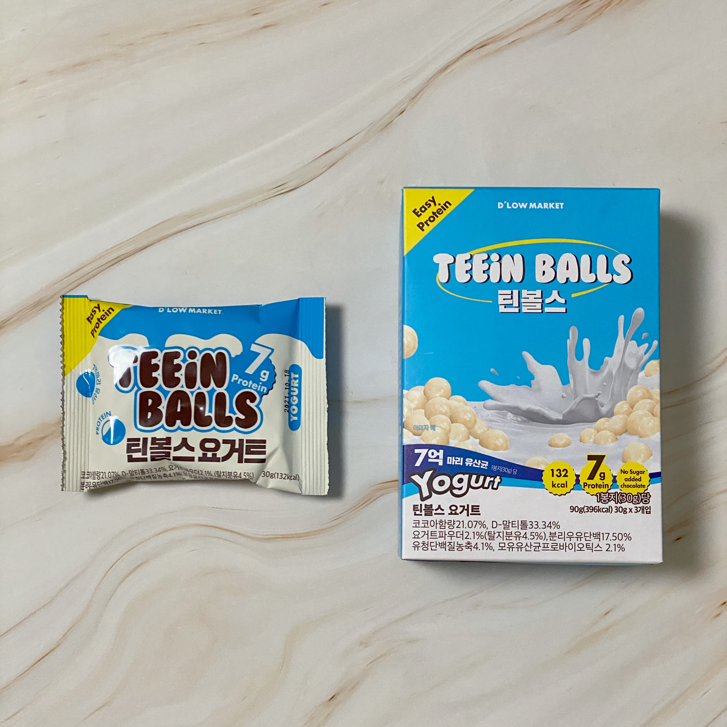 다이어트 간식의 경우 양도 중요하고 성분도 중요한데, 이 틴볼스 요거트는 가벼운 양에 유산균, 단백질까지 들어있는 알찬 영양성분이라 식단관리나 운동 후에도 먹기 좋을듯합니다.
