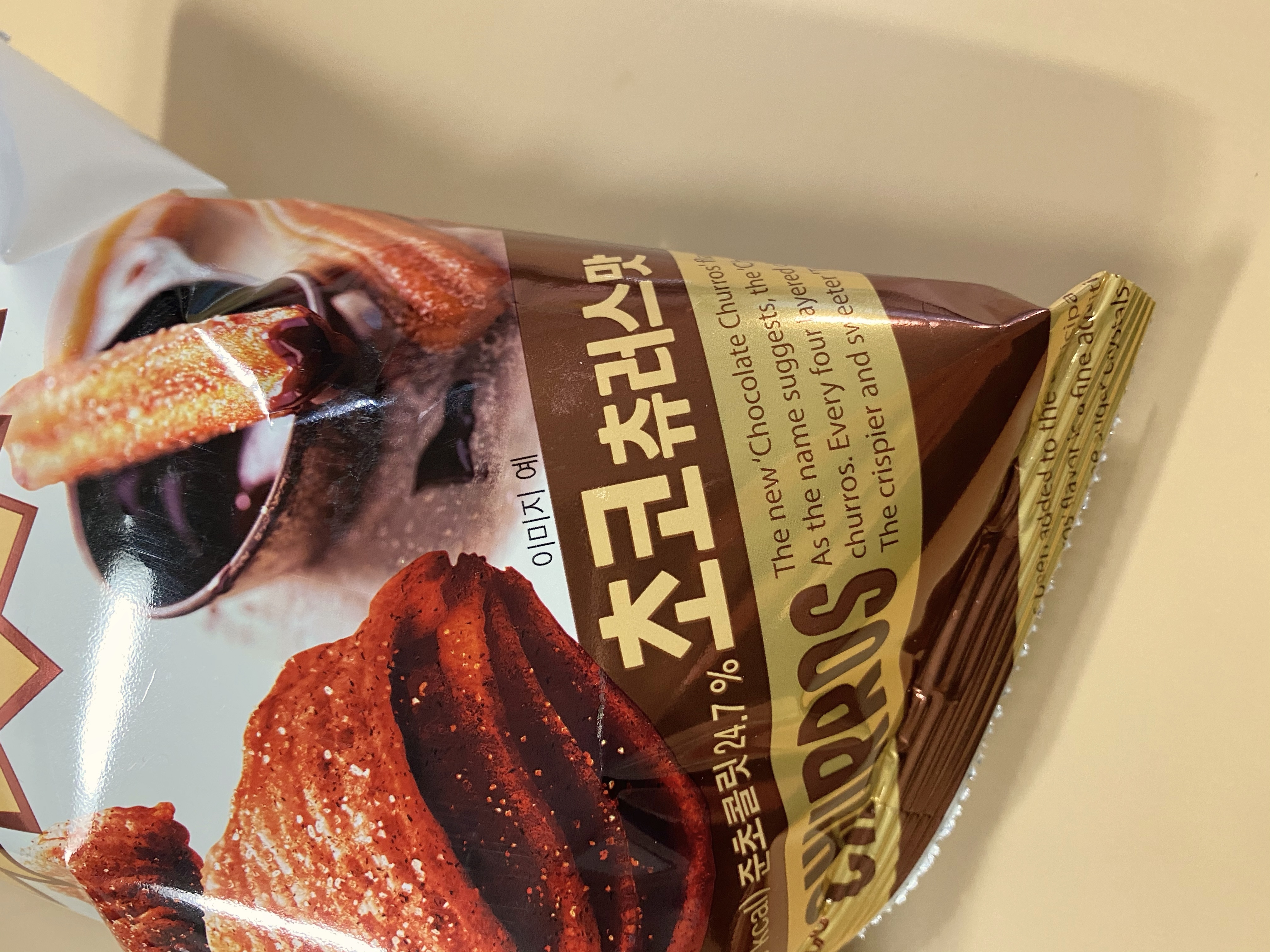 그리고 초코맛을 내기 위한 준초콜릿이 24.7%나 들어있습니다. 츄러스의 사진도 보이는데, 초코와 츄러스의 조합이 기대가 되는 과자였네요.