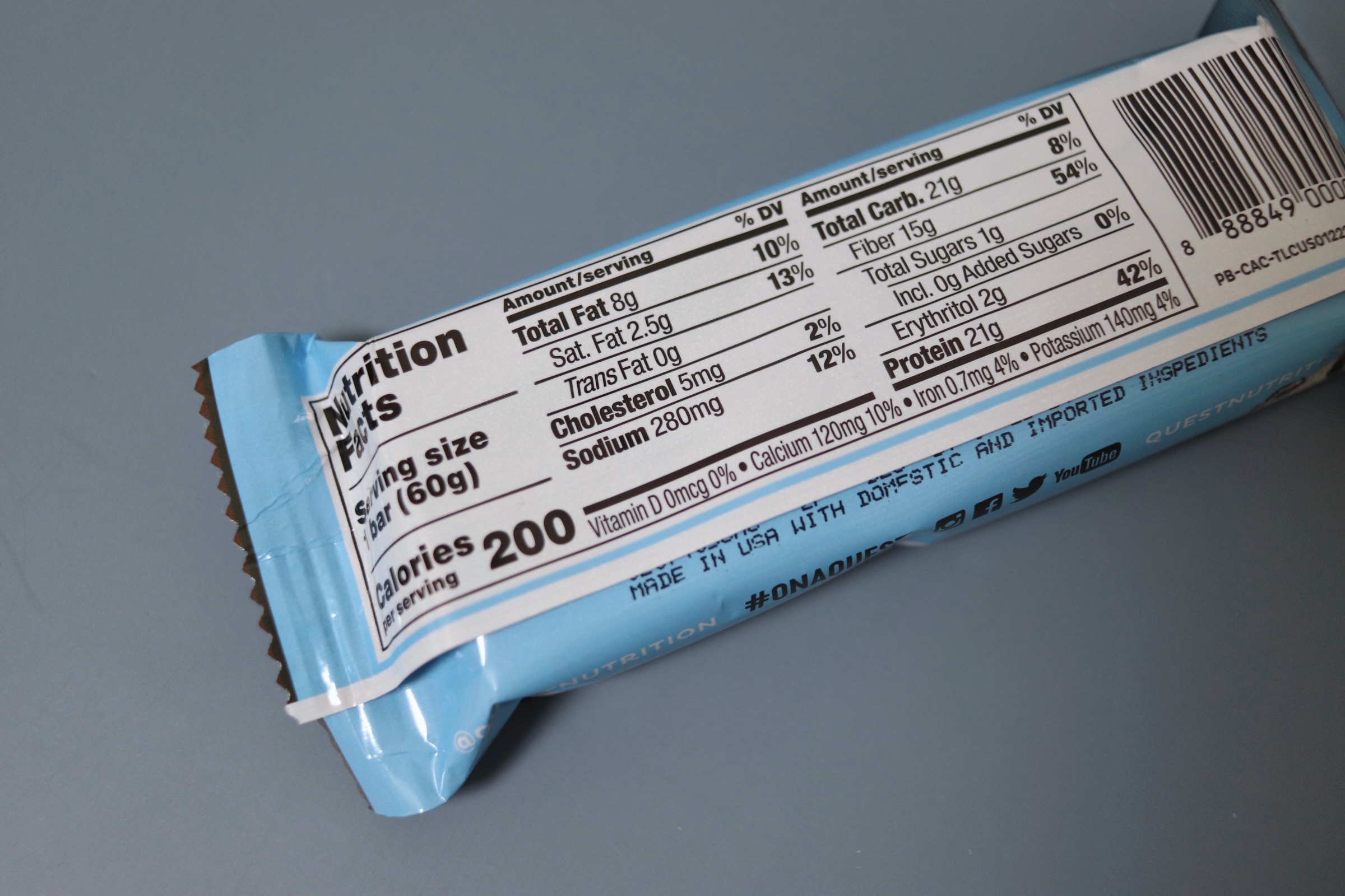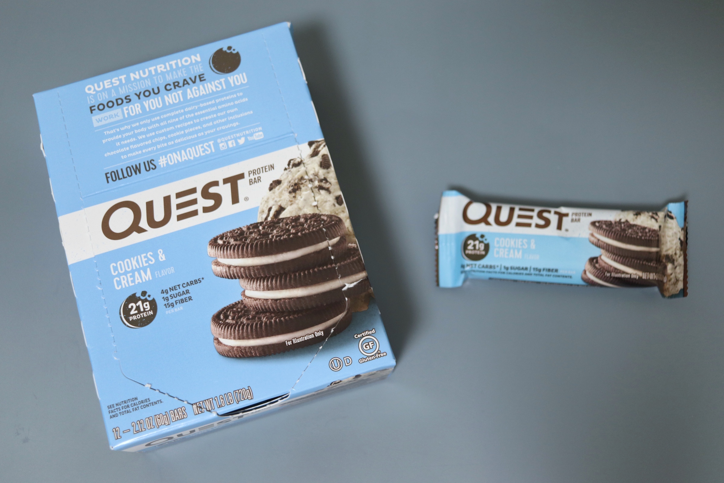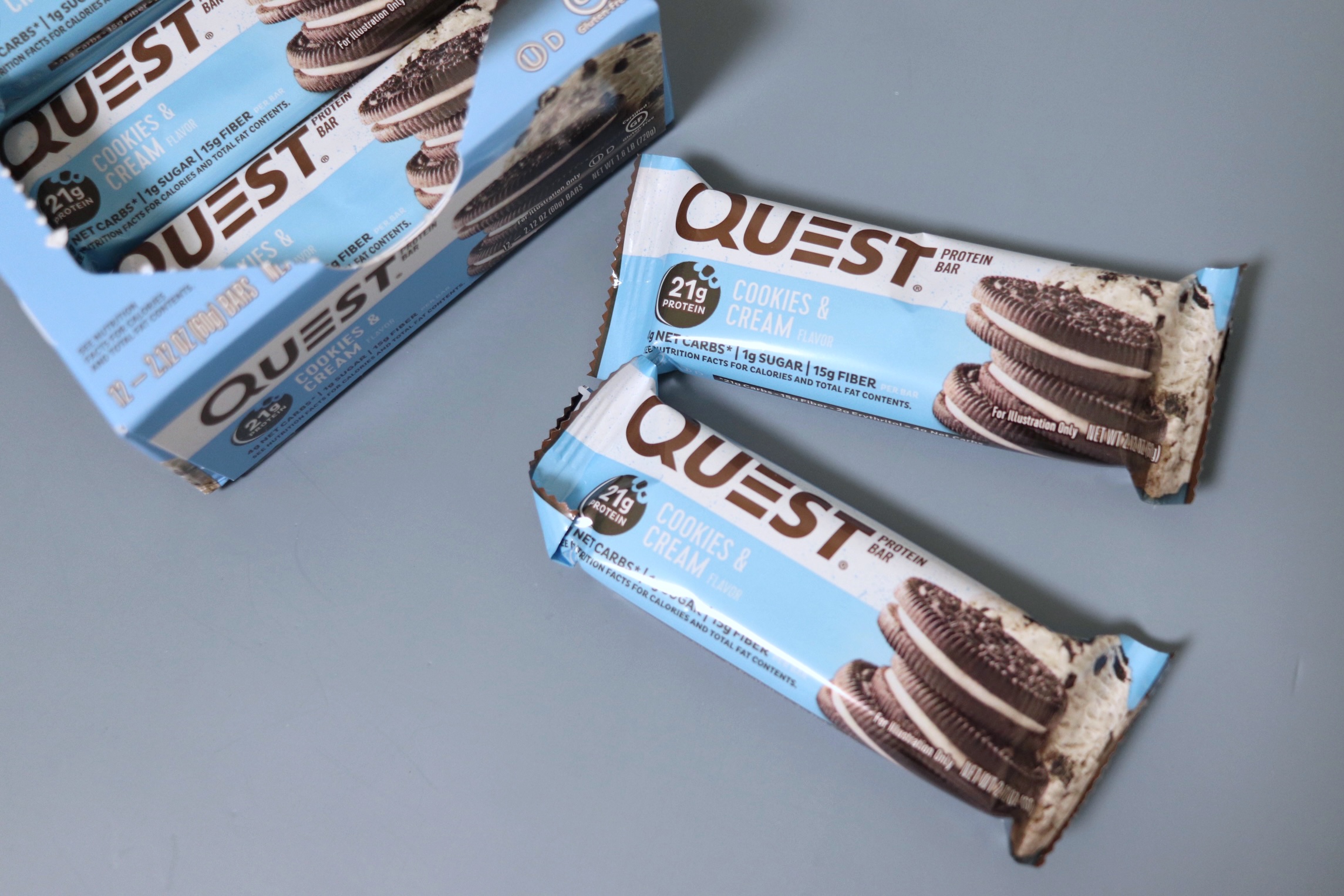 퀘스트 프로틴바는 다양한 맛에 높은 프로틴 함량, 간단하게 먹기 좋은 형태라 인기가 많은 단백질바 중 하나입니다. 단백질은 21g이 들어있고 1g의 설탕, 15g의 식이섬유까지 함유되어있어요