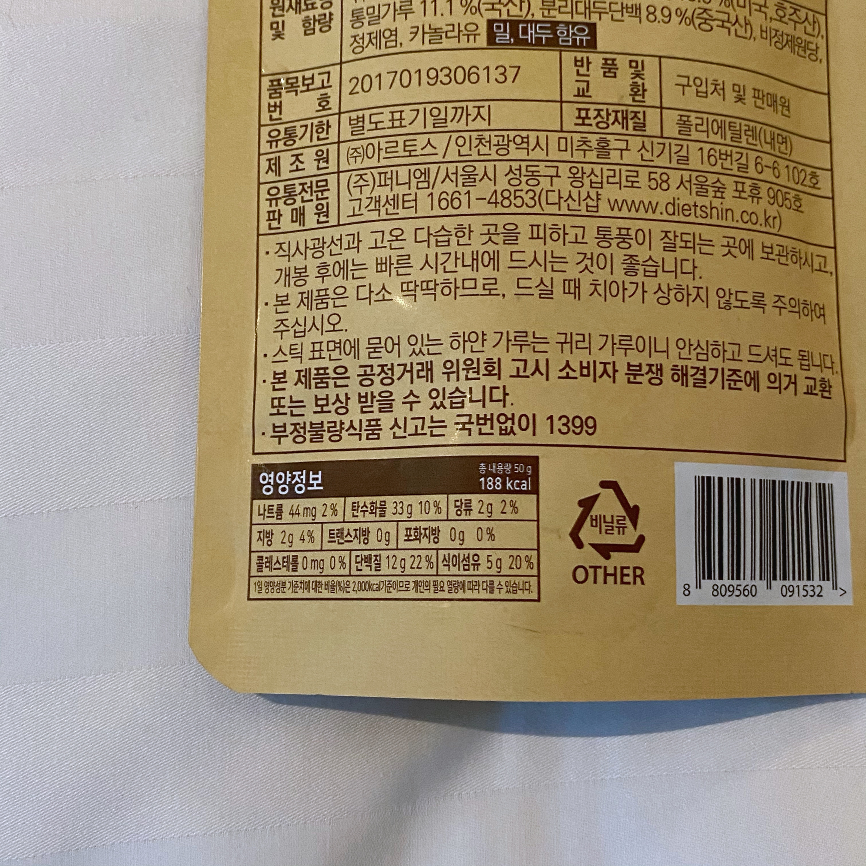 단백질이 많이 함유되어있고, 식이섬유, 통밀이라 그런지 포만감도 꽤 드는 다이어트 간식입니다.