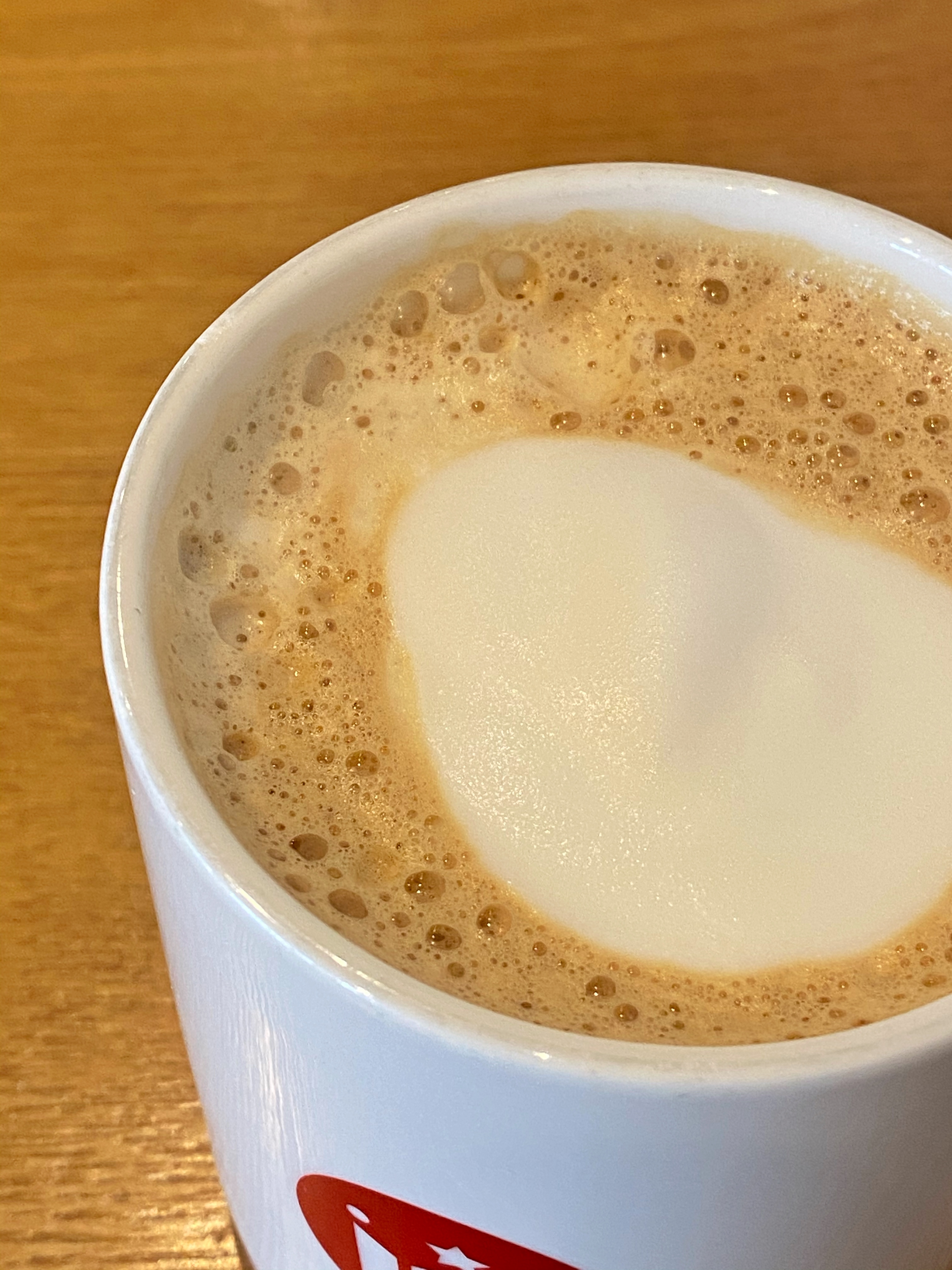 부드러운 거품이 살짝 올라가있으면서 아래에는 바닐라 파우더로 인해 풍부한 바닐라향이 느껴지는 라떼에요.