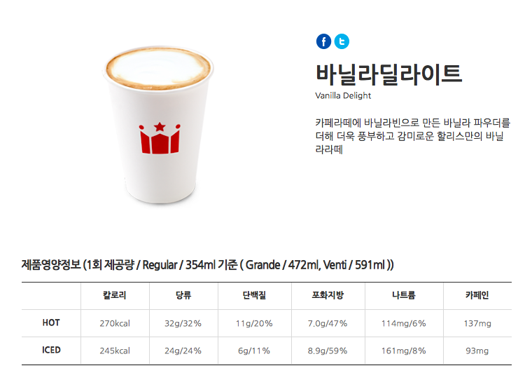 할리스커피 메뉴 추천 ; 바닐라딜라이트