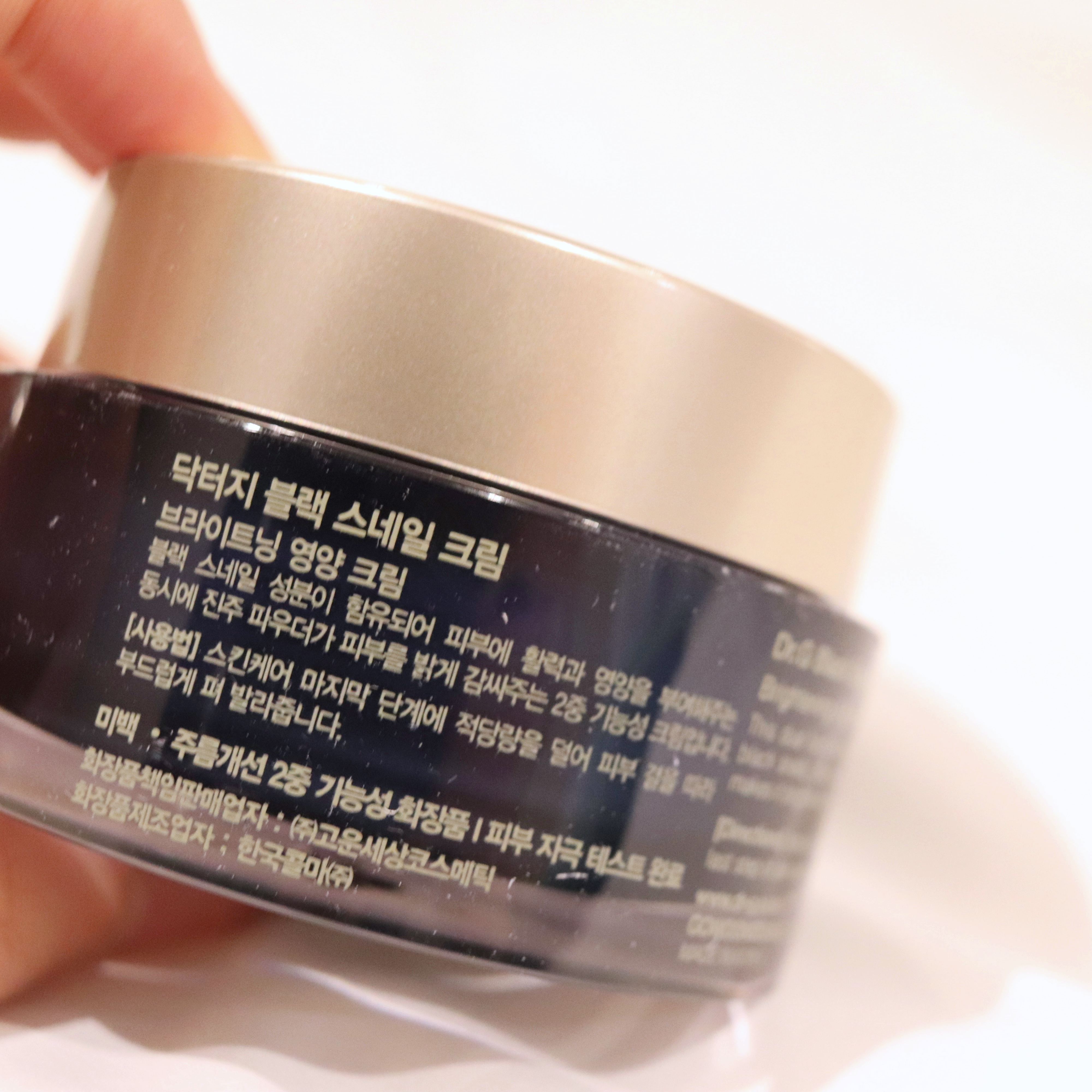블랙 스네일 크림의 경우 브라이트닝 영양 크림으로 나왔어요.