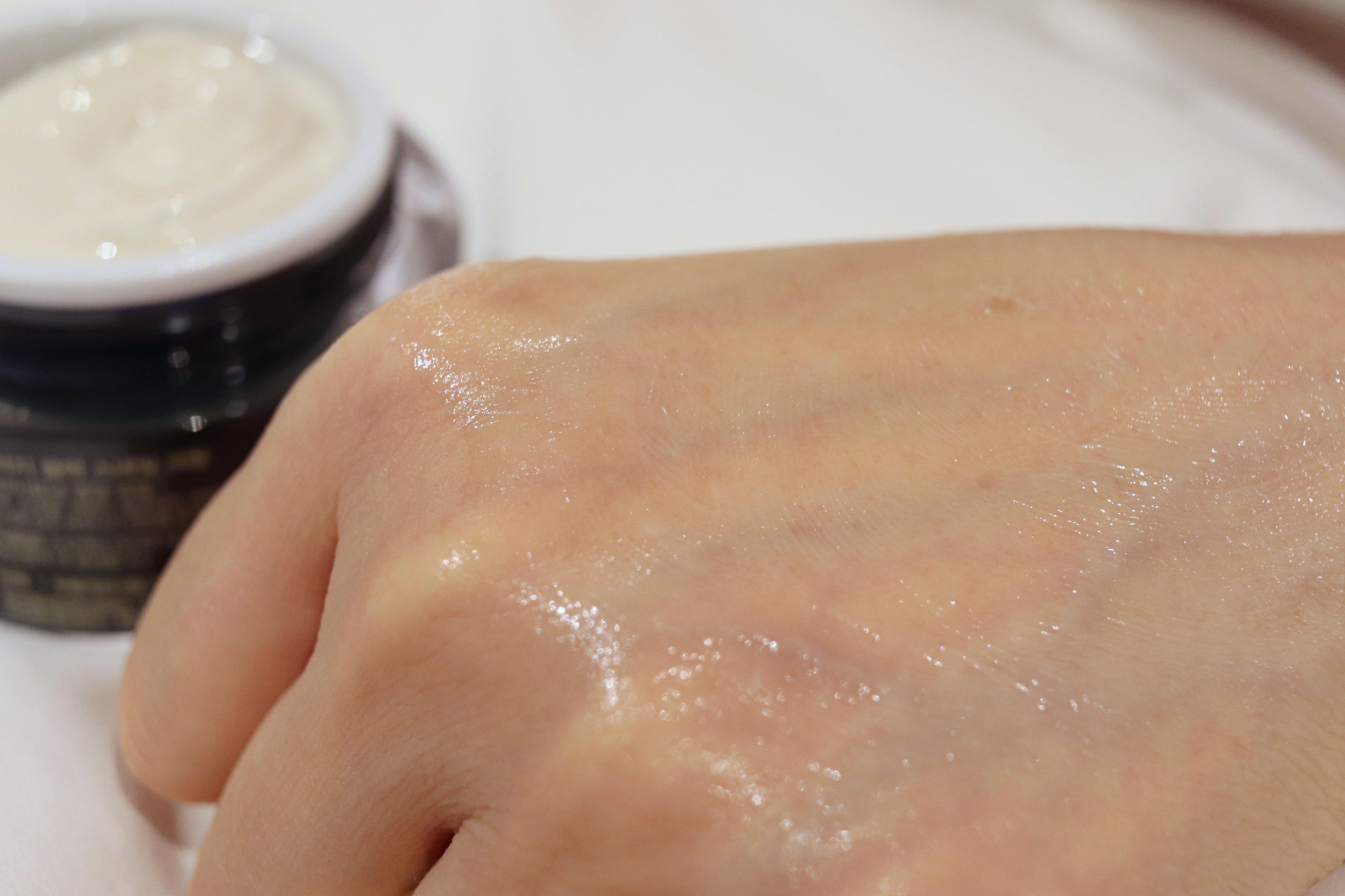 이런 점액 같은 느낌의 크림이라 더욱 쫀쫀하게 피부에 수분을 충전해주는거 같아요.