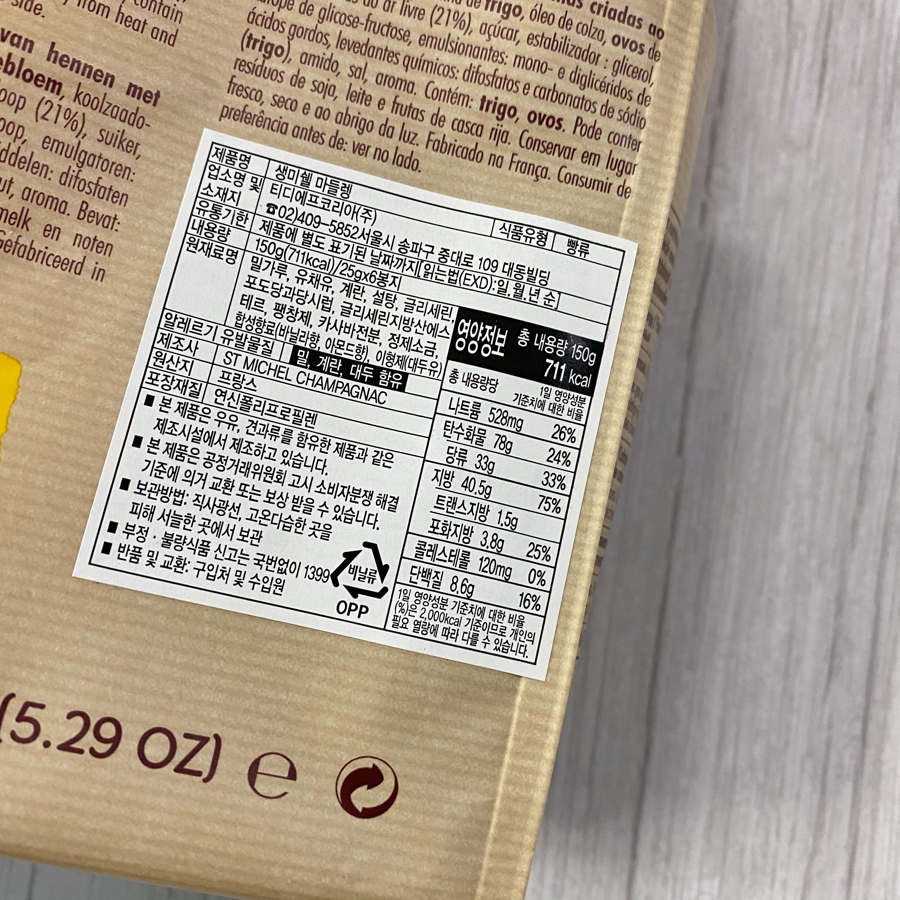 생미쉘 마들렌 칼로리는 711kcal로 총 내용량 150g의 칼로리입니다. 한 봉지의 칼로리는