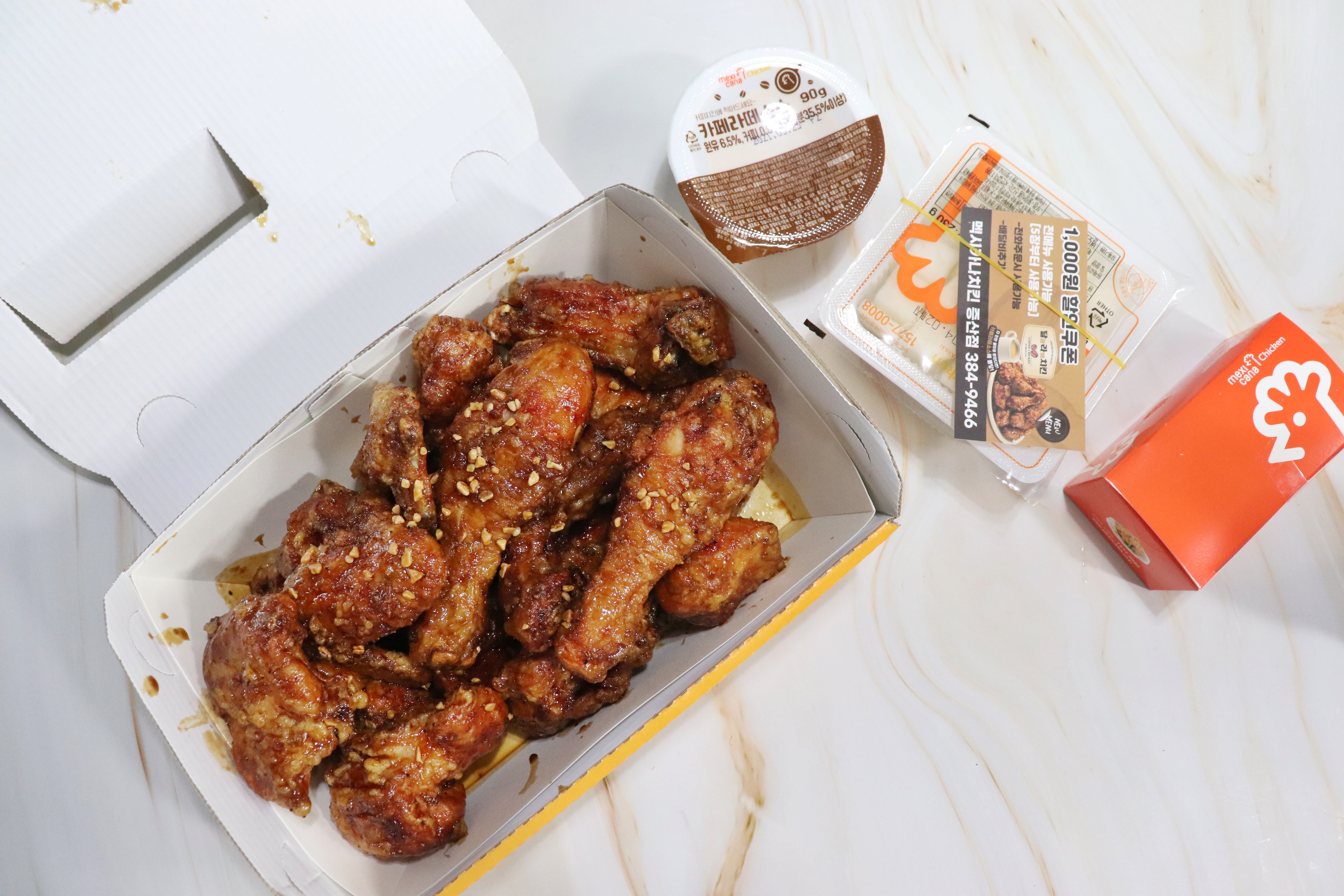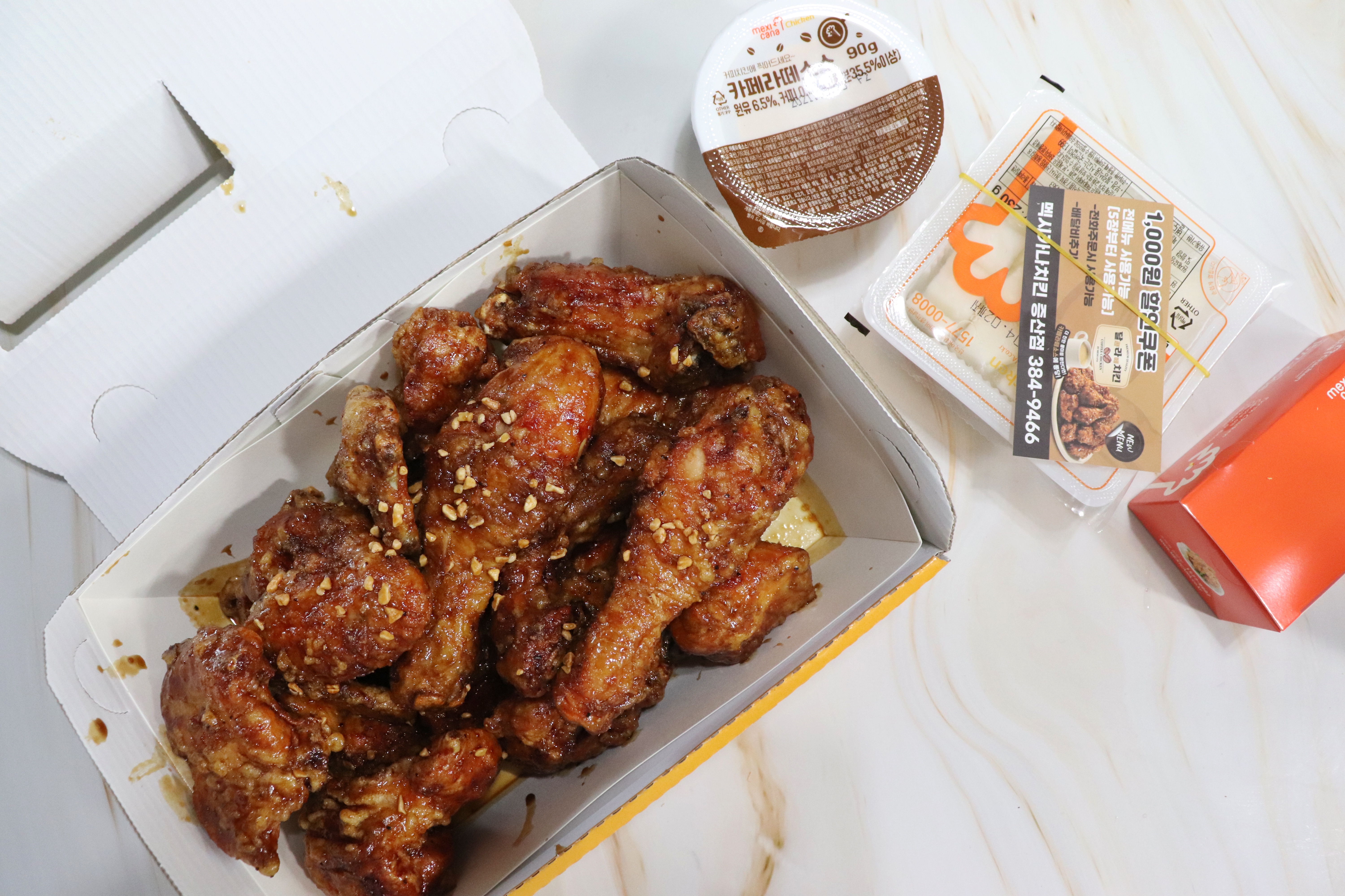 커피맛양념인건지 양념 치킨류 전용 박스에 담겨왔구요.