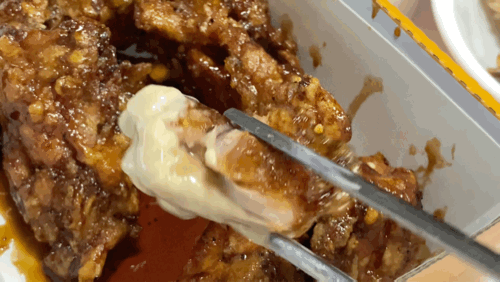 달달하면서도 짭짤한 간장치킨에 카페라떼소스가 조금 낯선 맛이기도 했지만