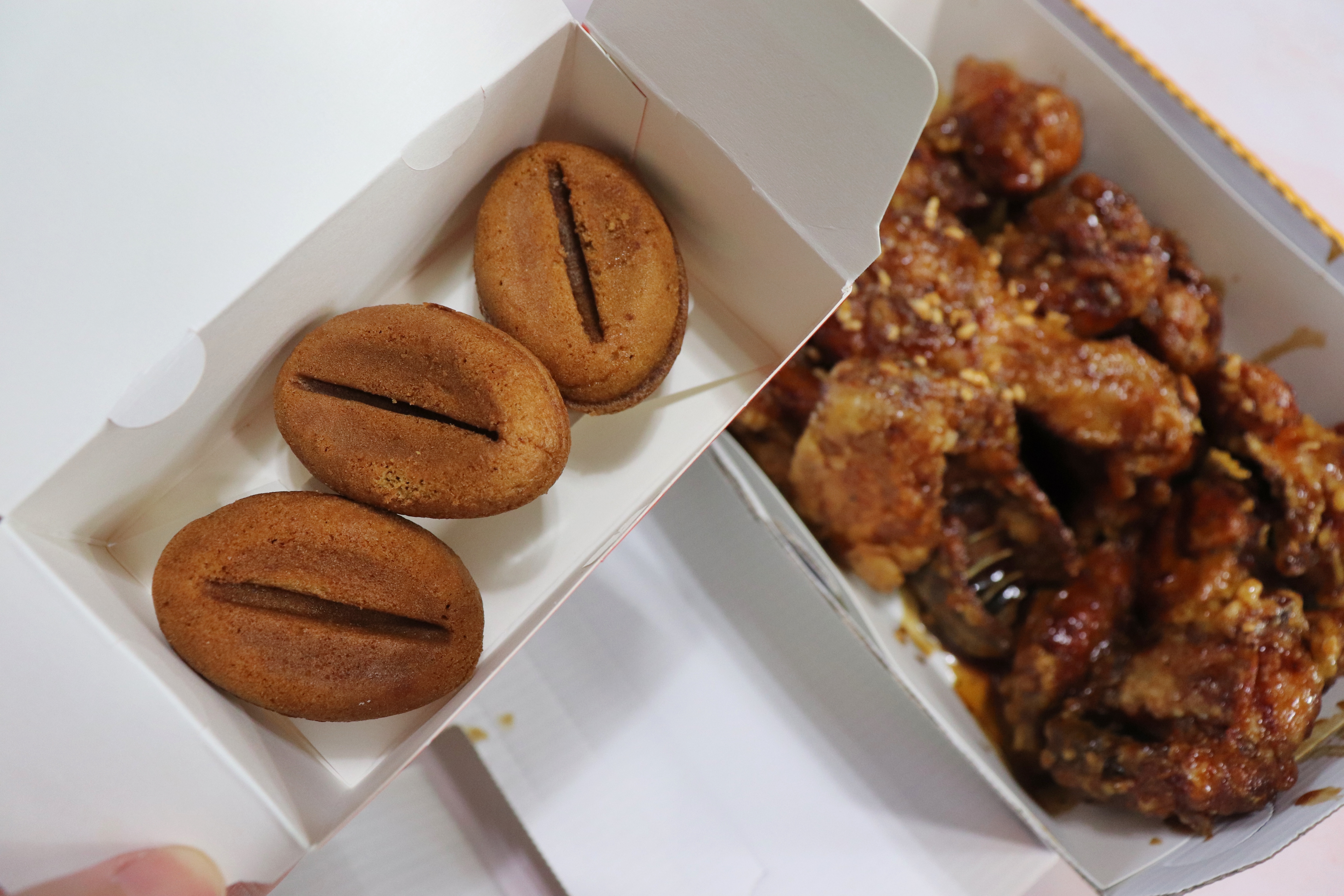 커피맛양념인건지 양념 치킨류 전용 박스에 담겨왔구요.