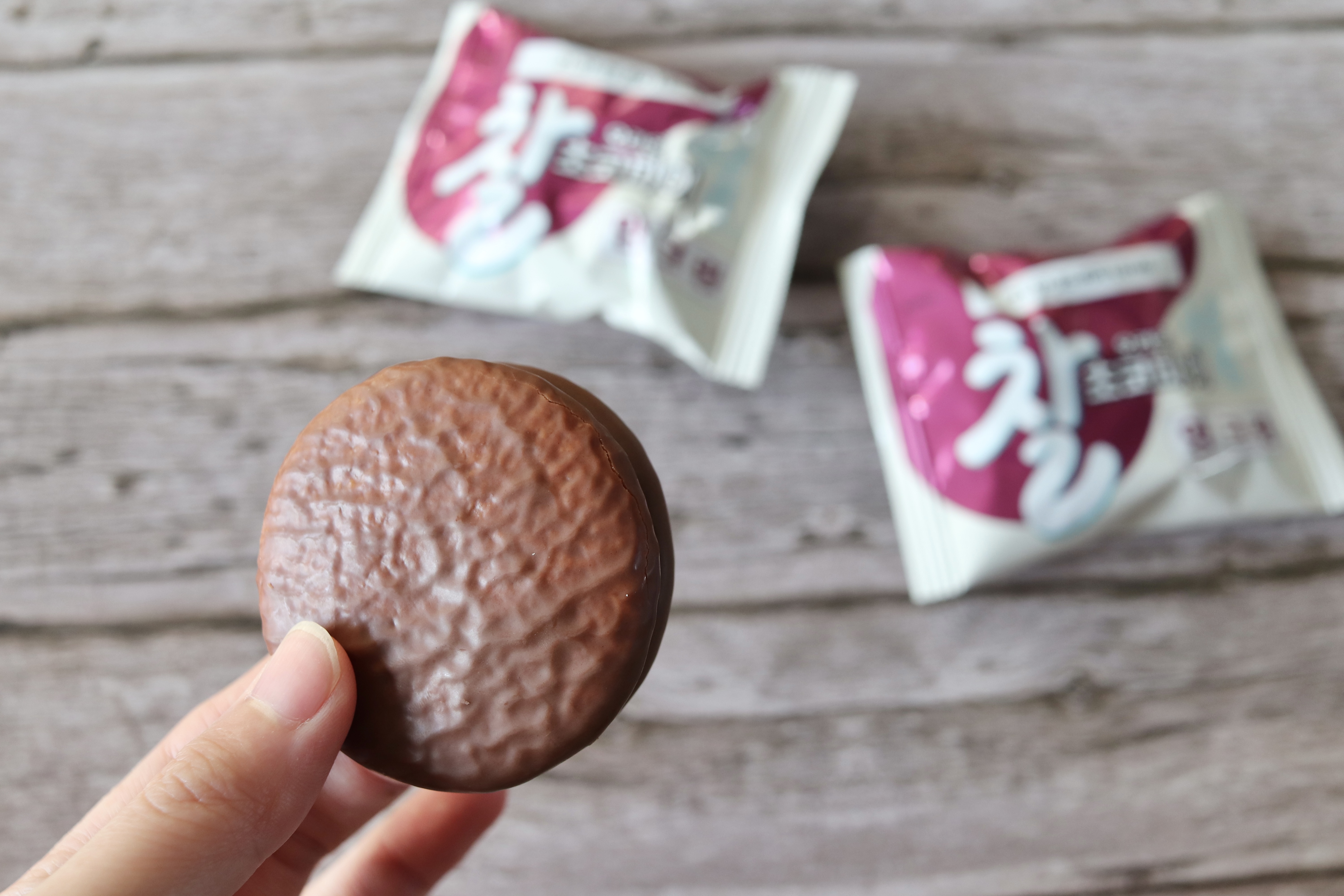 크기는 일반 초코파이보다는 약간 작은 크기였습니다.