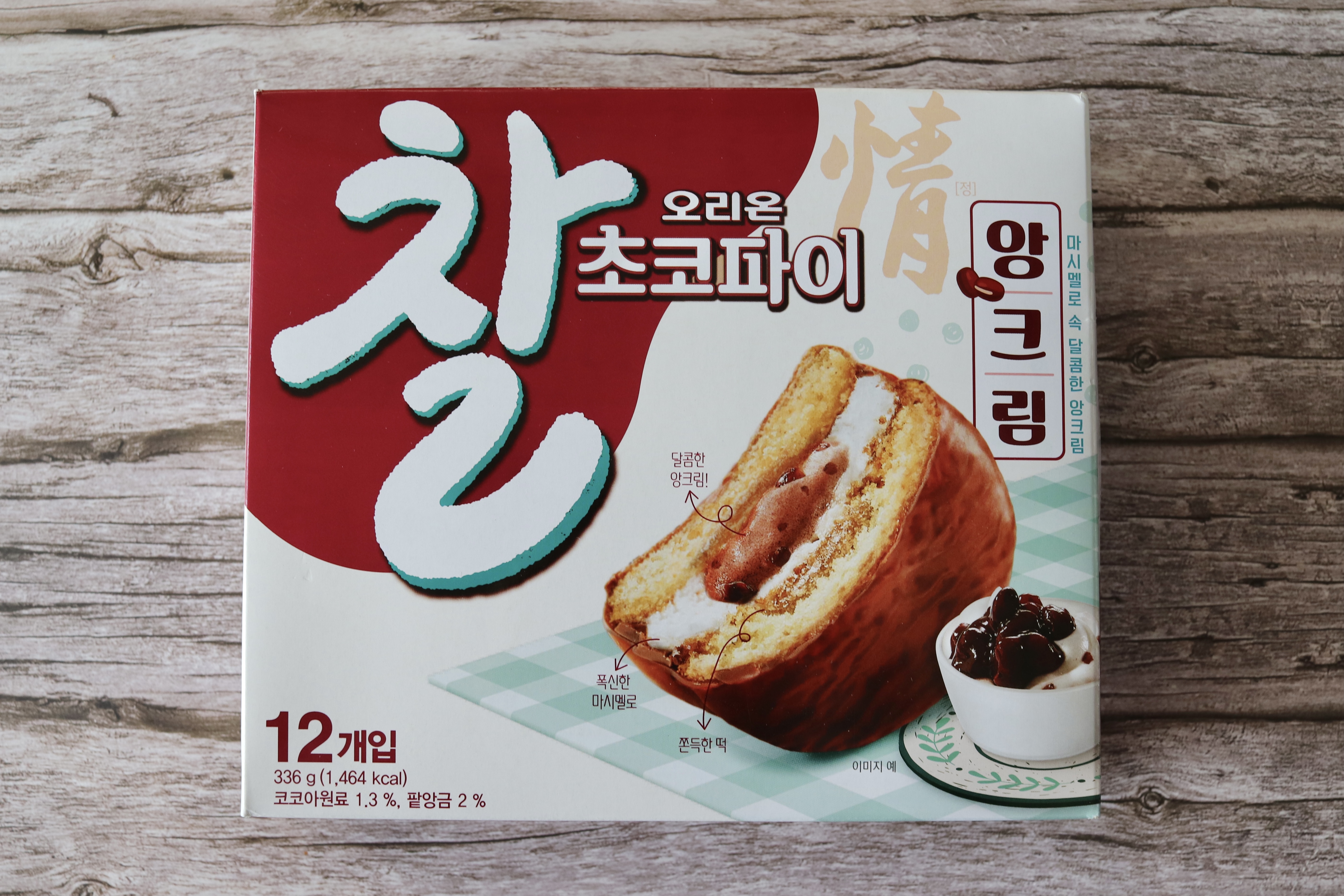 한 상자에는 12개가 들어있고, 코코아원료 1.3%, 팥앙금 2%가 들어는게 특징입니다.