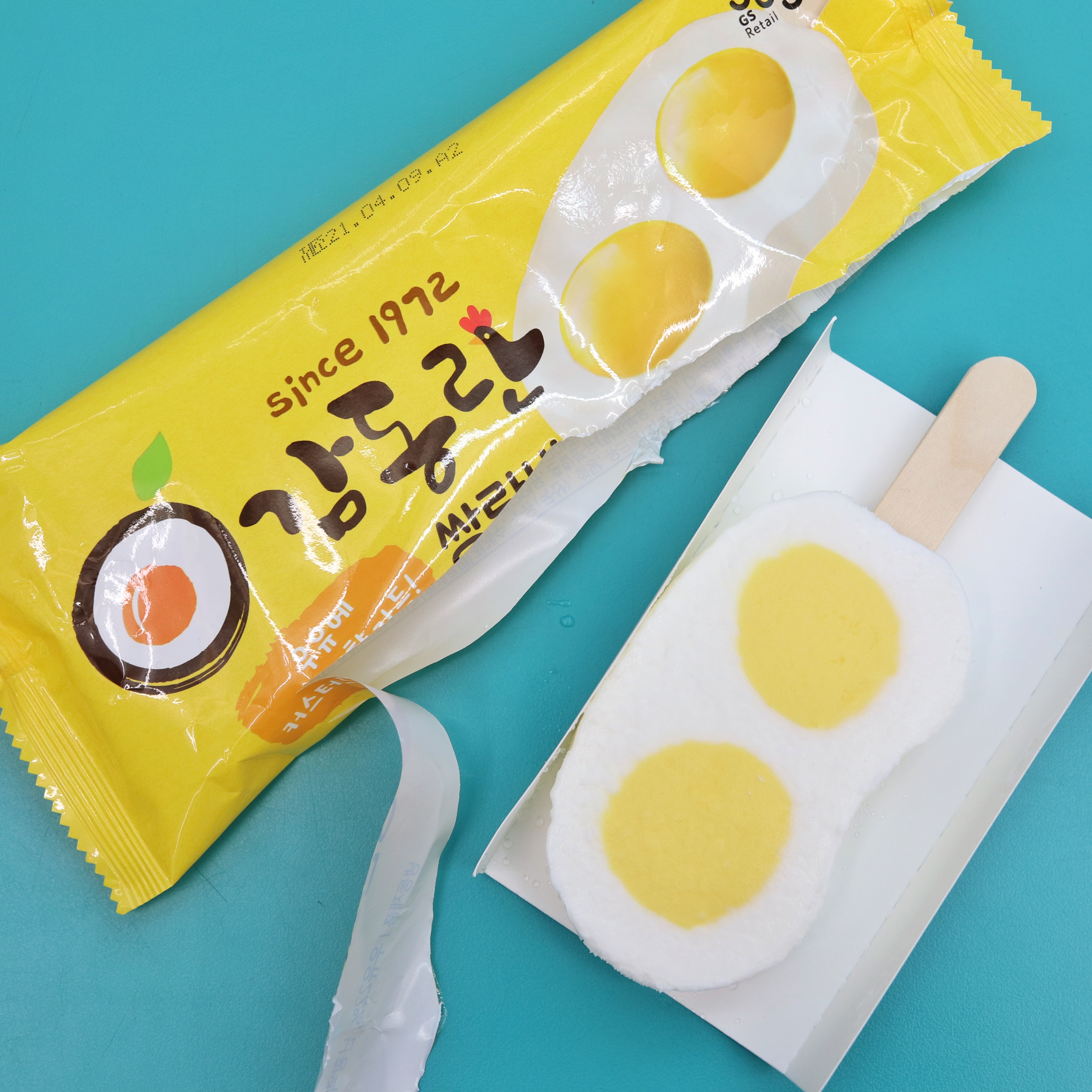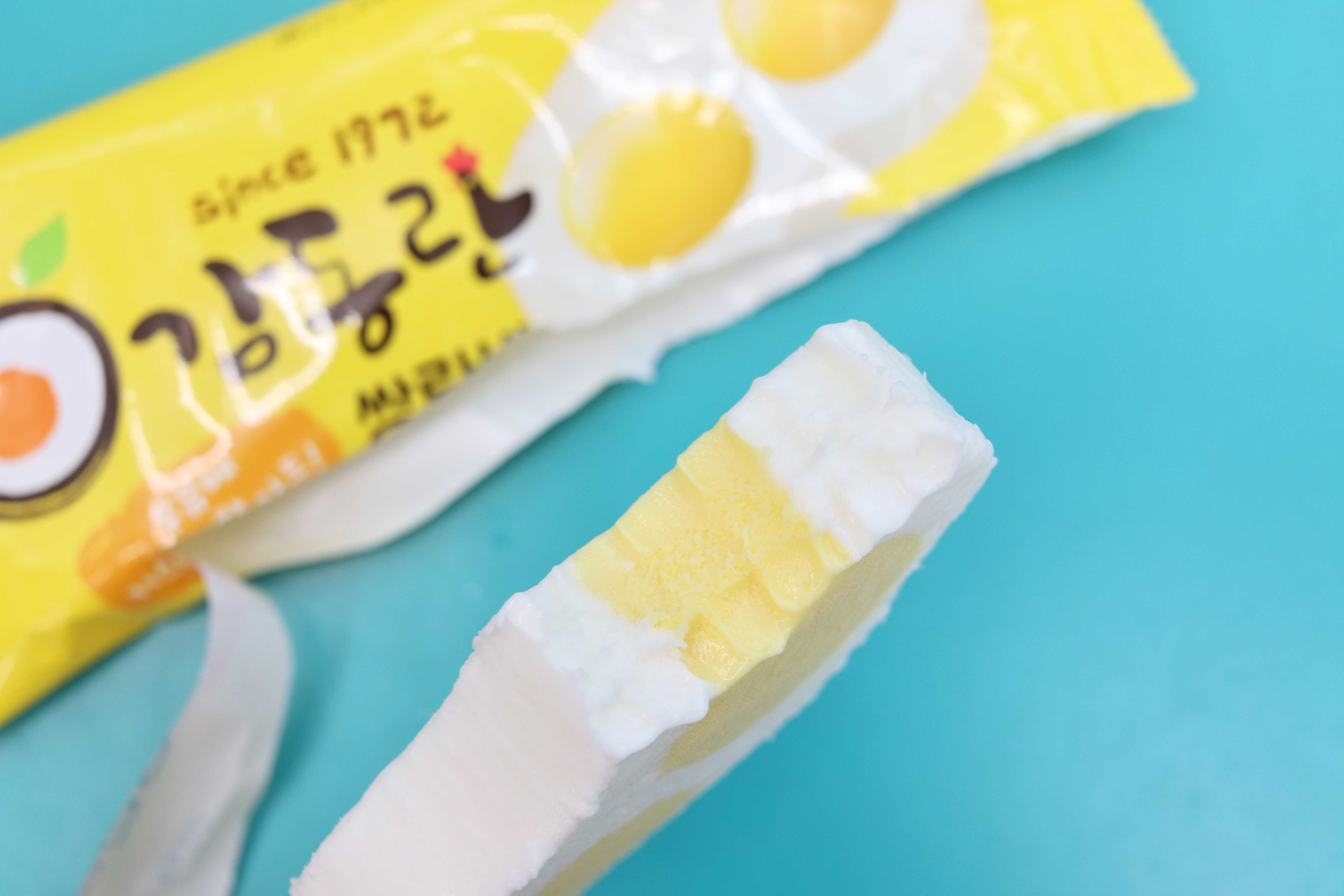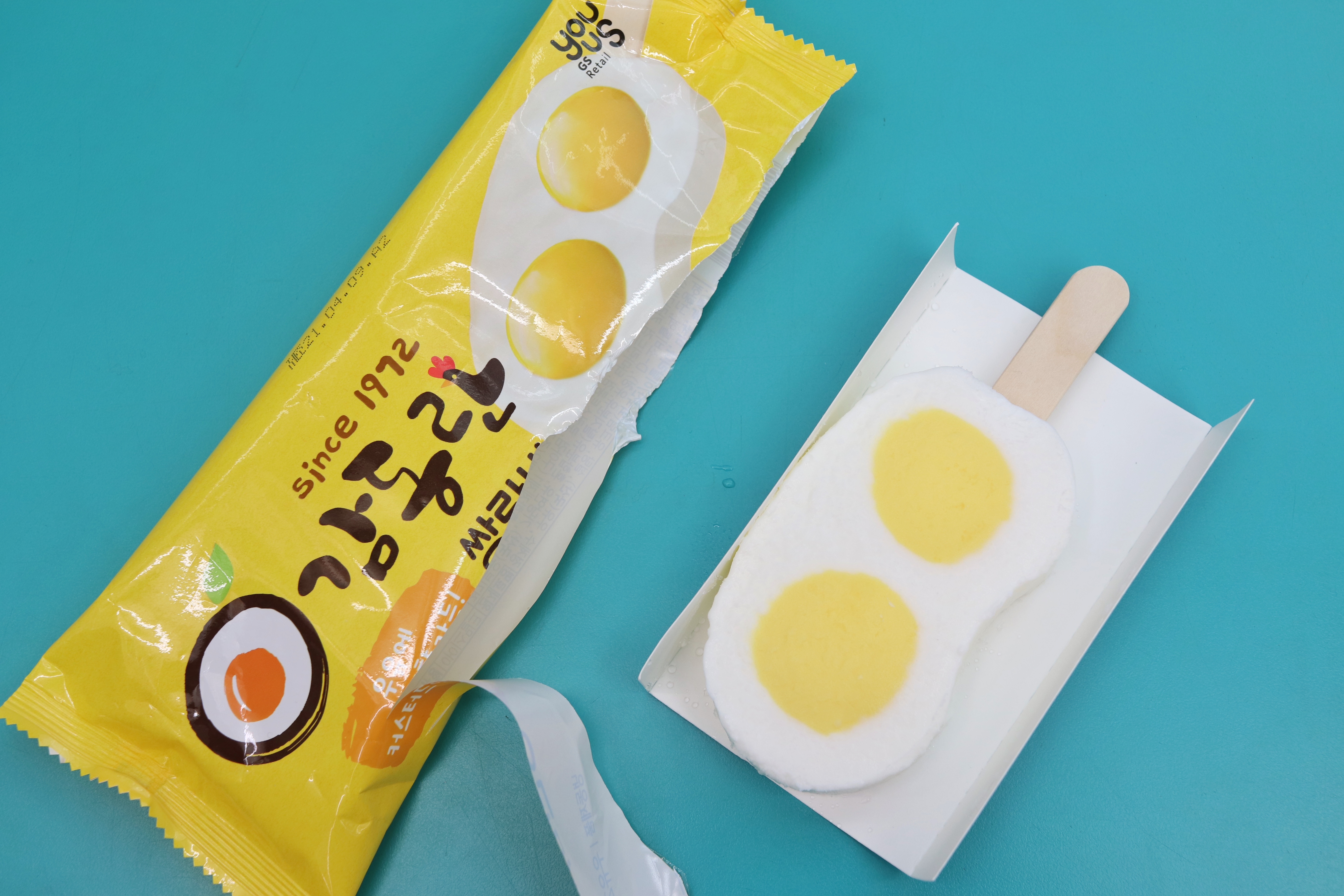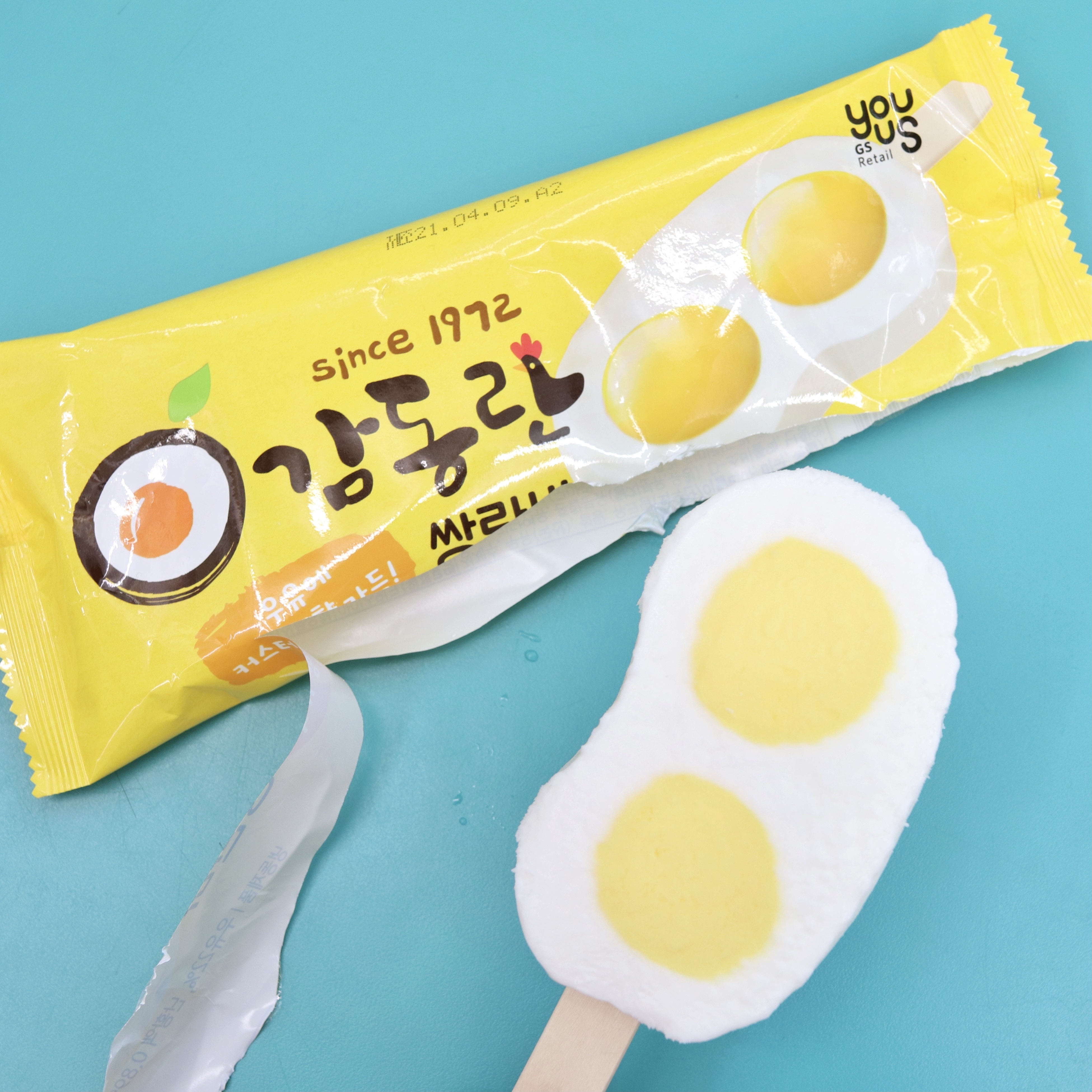 오랜만에 편의점에 갔던니 신상 아이스크림이 많이 보이더라구요. 그 중에 SNS에서 많이 보았던걸로 하나 골라보았습니다. 노른자가 두개 들어있는 쌍란모양의 바였답니다. 날씨가 더워지는 만큼 시원하게 즐길 수 있는 새로운 간식이었어요.