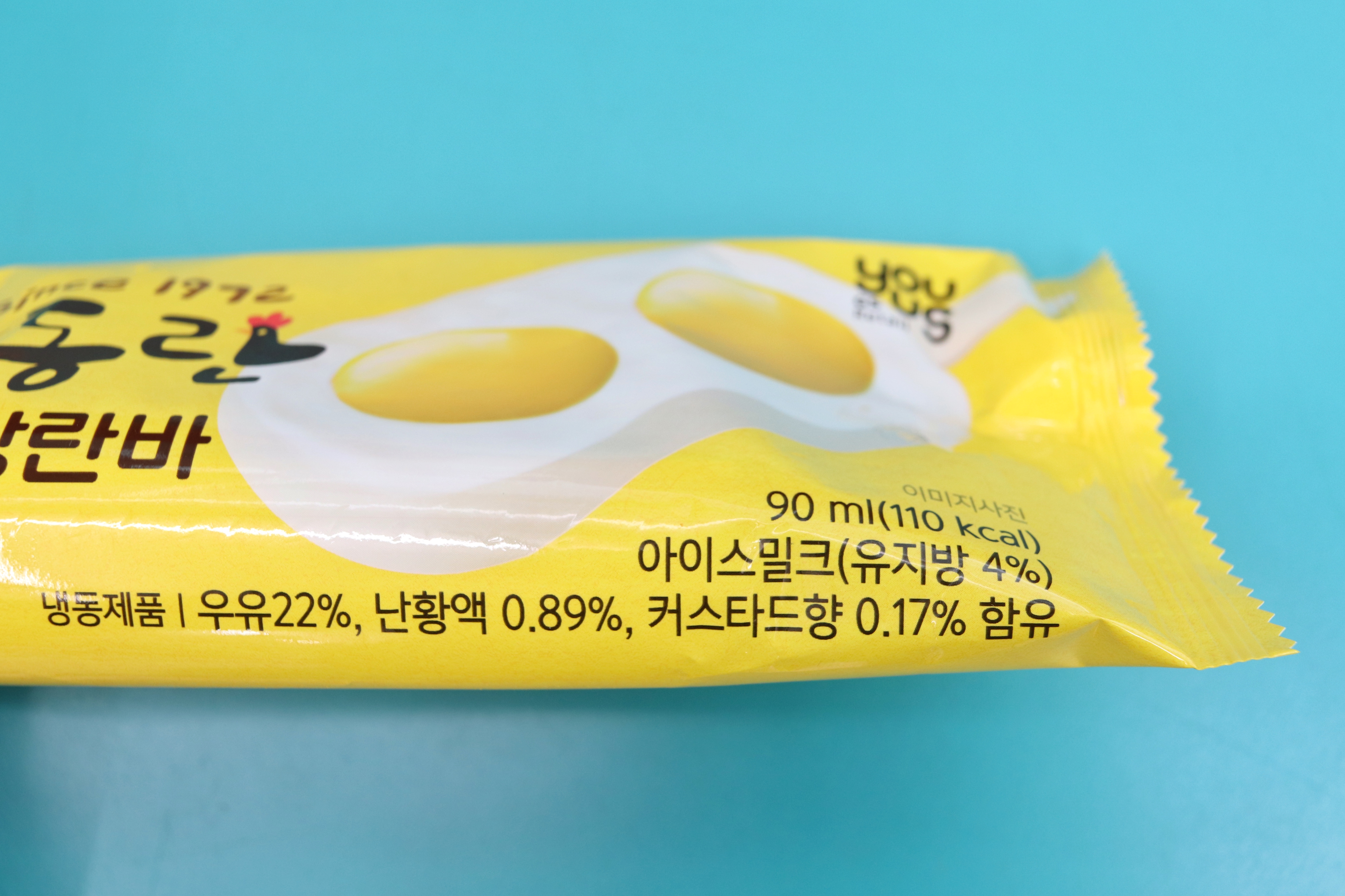 우유에 커스터드향이 가득 들어있다는 맛의 신상 아이스크림. 우유 22%, 난황액 0.89%, 커스타드향 0.17%가 함유되어있는 아이스밀크에요.
