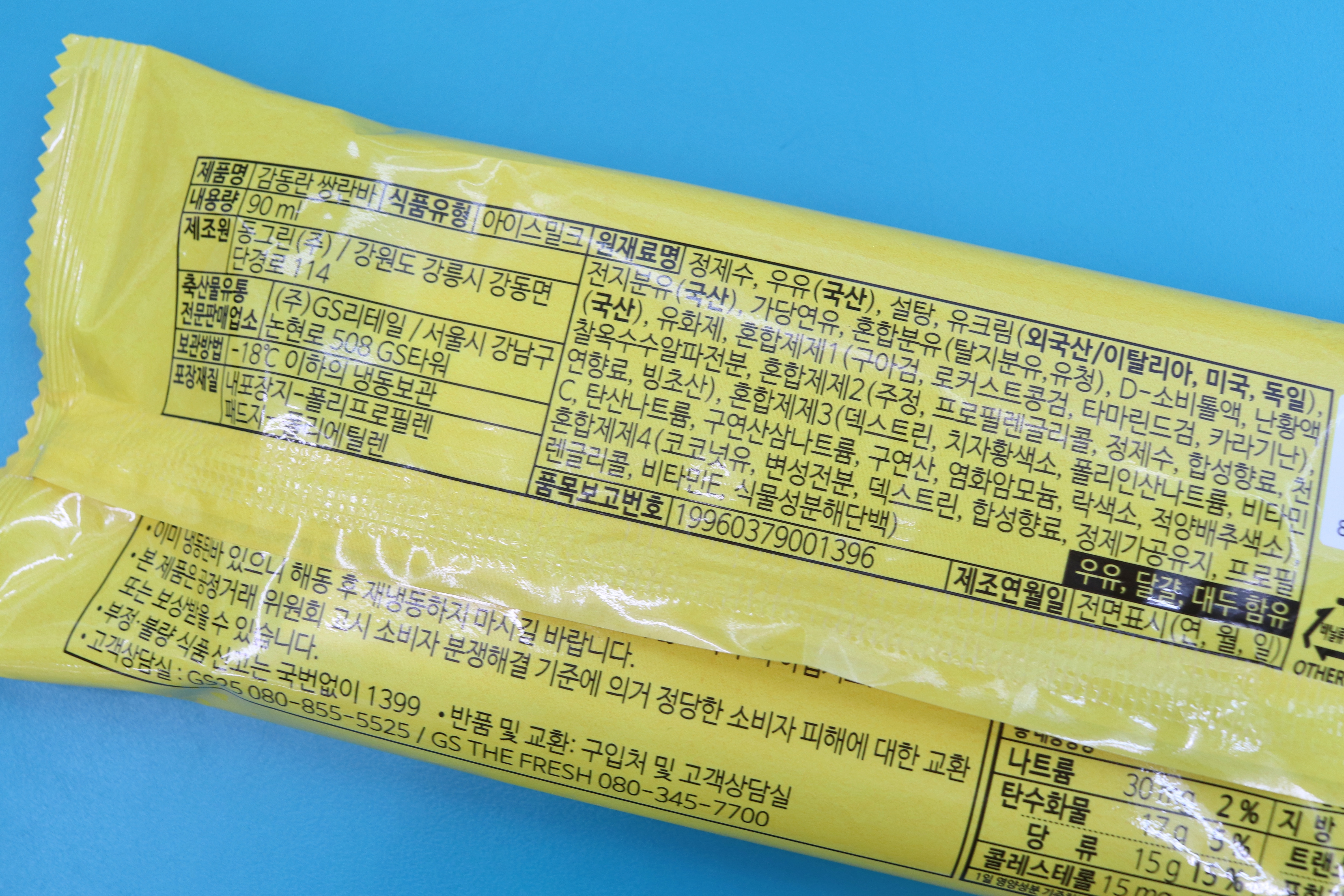 뜯어본 감동란 쌍란바의 모습입니다. 노른자 두개가 나란히 붙어있는 모양의 계란같아요. 벌써 날씨가 더워진건지 사는 동안에도 먹기좋게 녹아있더라구요. ㅎㅎ아마 부드러운 아이스밀크라 빨리 녹는 느낌이긴 했습니다.