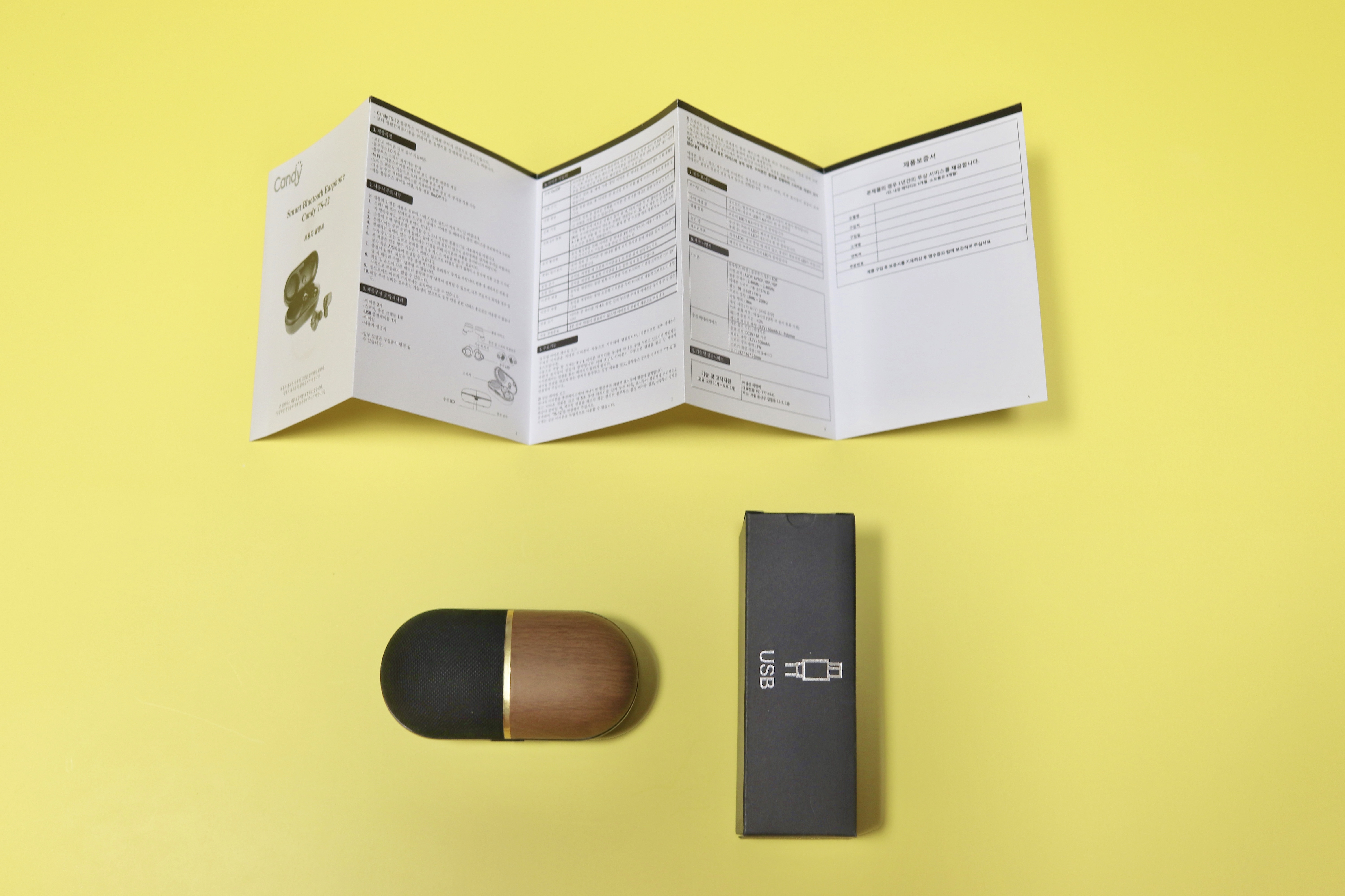 디자인도 매우 깔끔한 편이죠. 우드와 블랙, 골드 색상이 함께 섞여 있어 고급스러우면서도 유니크한 느낌이 들어 일반적인 무선이어폰과는 다르게 특별함이 느껴지더라구요.