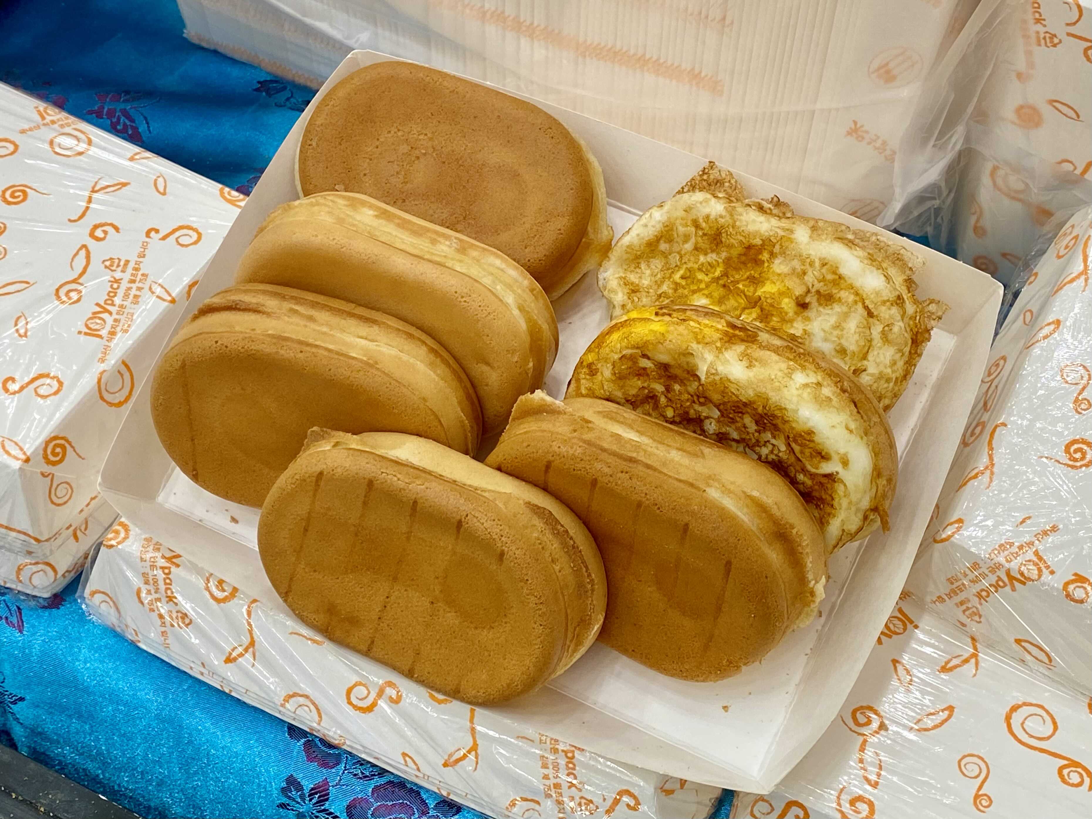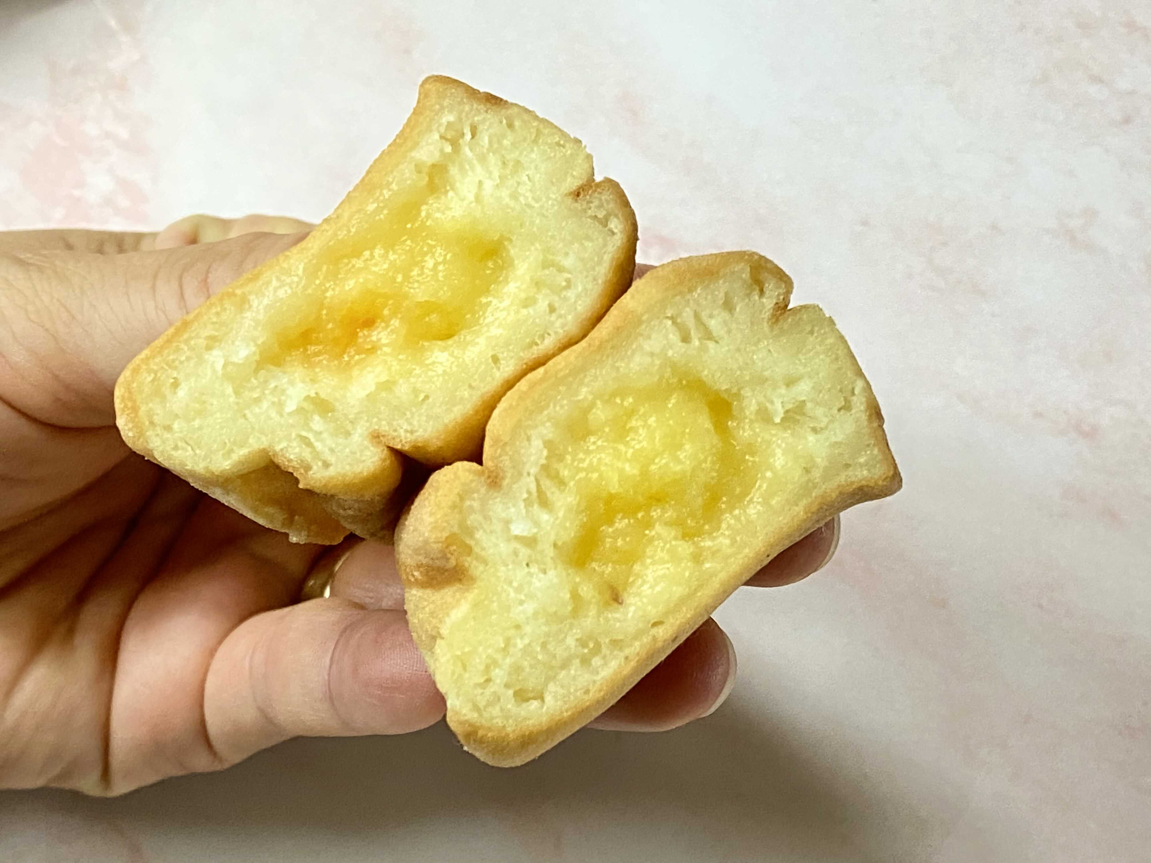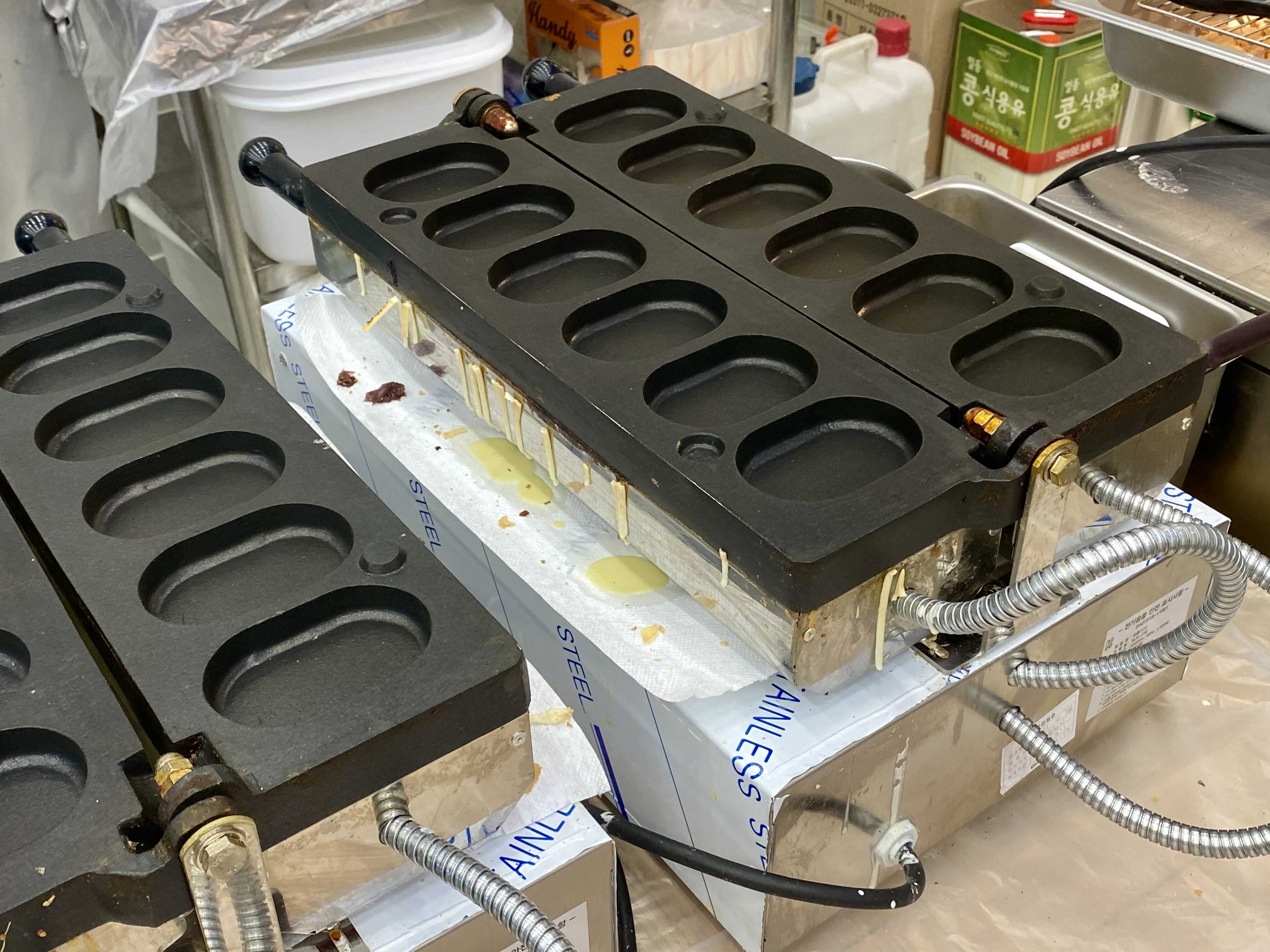 풀빵의 일종이라고 해 풀빵과 비슷할거라 생각했지만 찹쌀이라 그런지 풀빵과는 완전히 다른 식감처럼 보이더라구요. 모양은 빵이었지만 떡에 더 가까운 식감을 내는 오방떡이었습니다. 안에는 슈크림이 들어있어 달달했구요.