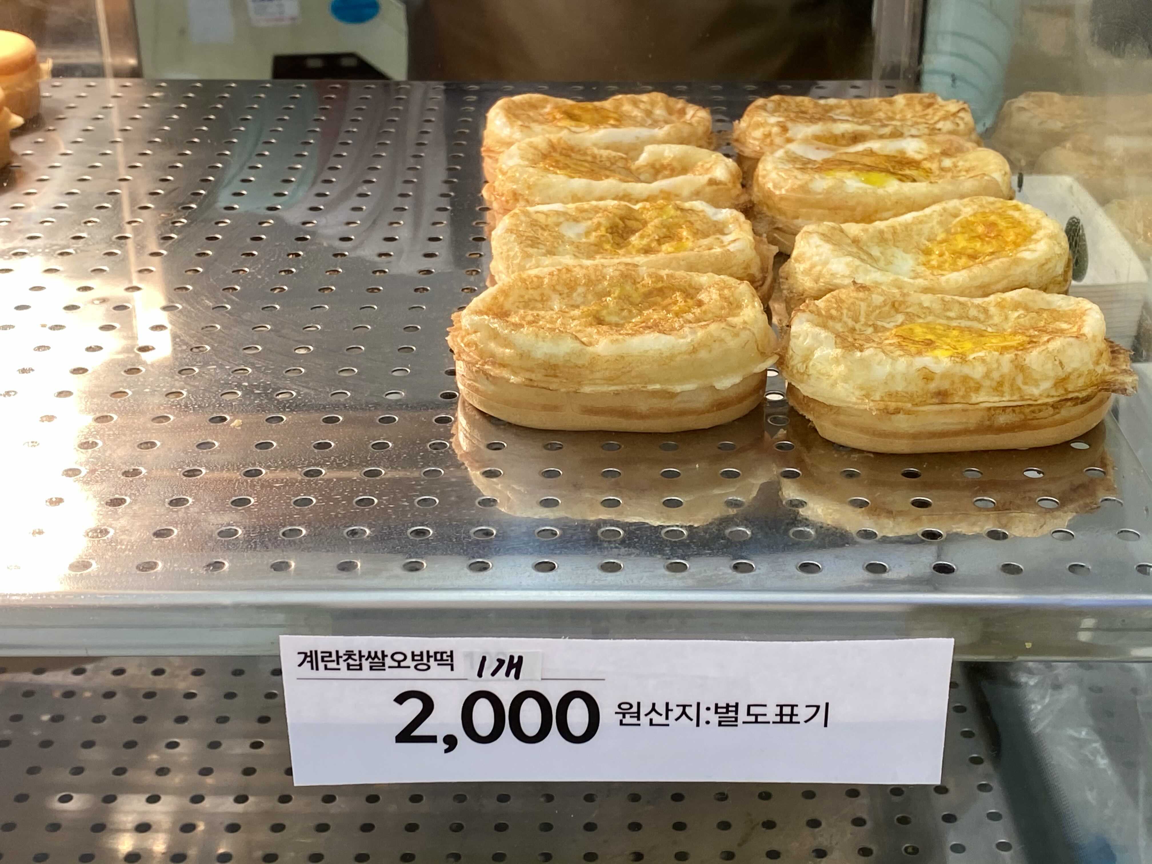 오방떡 종류에는 통팥찹쌀, 슈크림, 계란 세 종류가 있었는데요. 세가지 종류 모두 하나를 구입하게 되면 2,000원이었어요. 따끈따끈하게 보관되어있기 때문에 갓 만든듯한 느낌의 오방떡을 즐길 수 있었습니다.