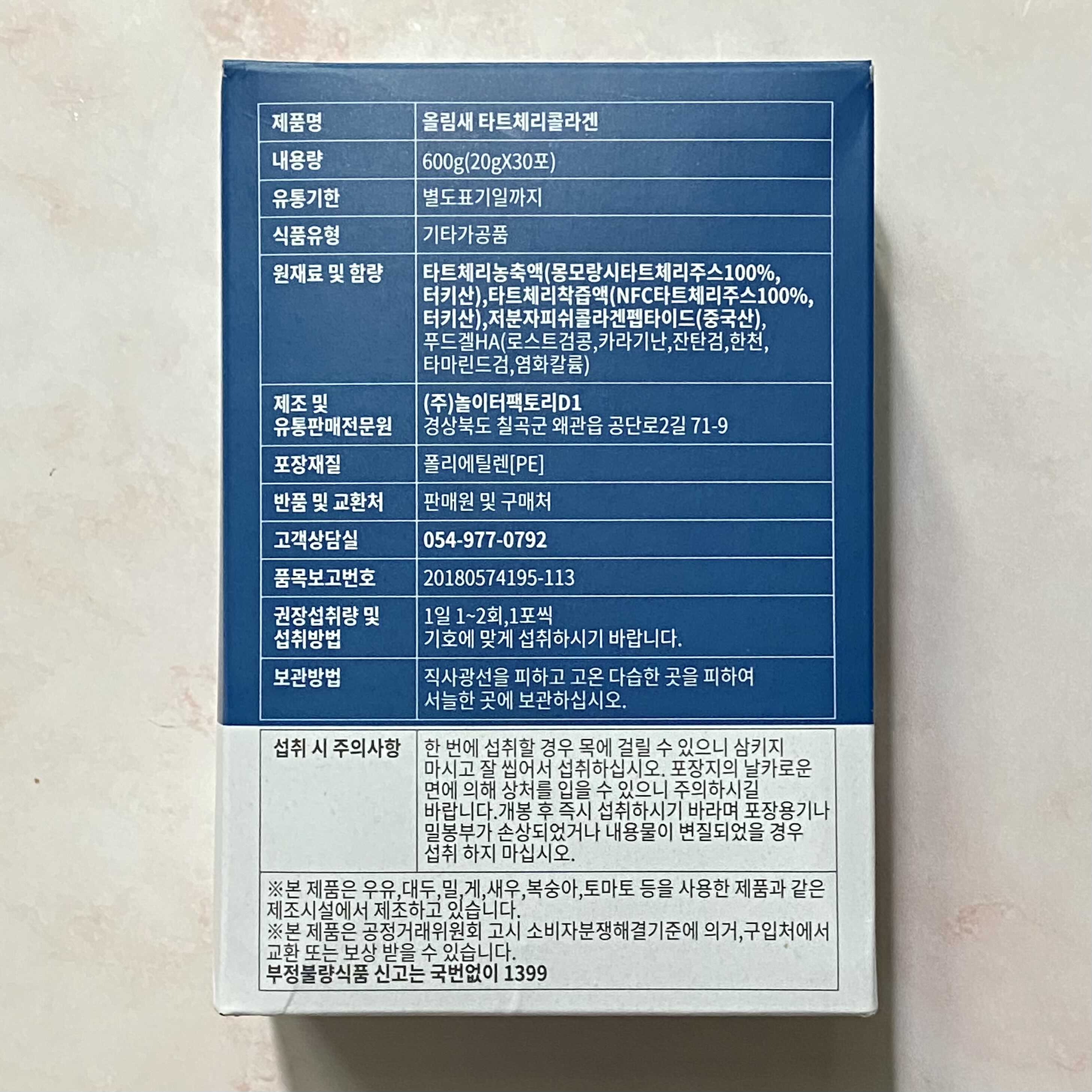 올림세 타트체리 콜라겐에는 이런 효능을 가진 타트체리가 들어있는데요. 농축액이 43%, 착즙액이 50%가 들어있어 풍부한 맛을 느낄 수 있답니다. 향료와 색소가 들어가있지 않은 건강함이 가득한 콜라겐스틱이에요.