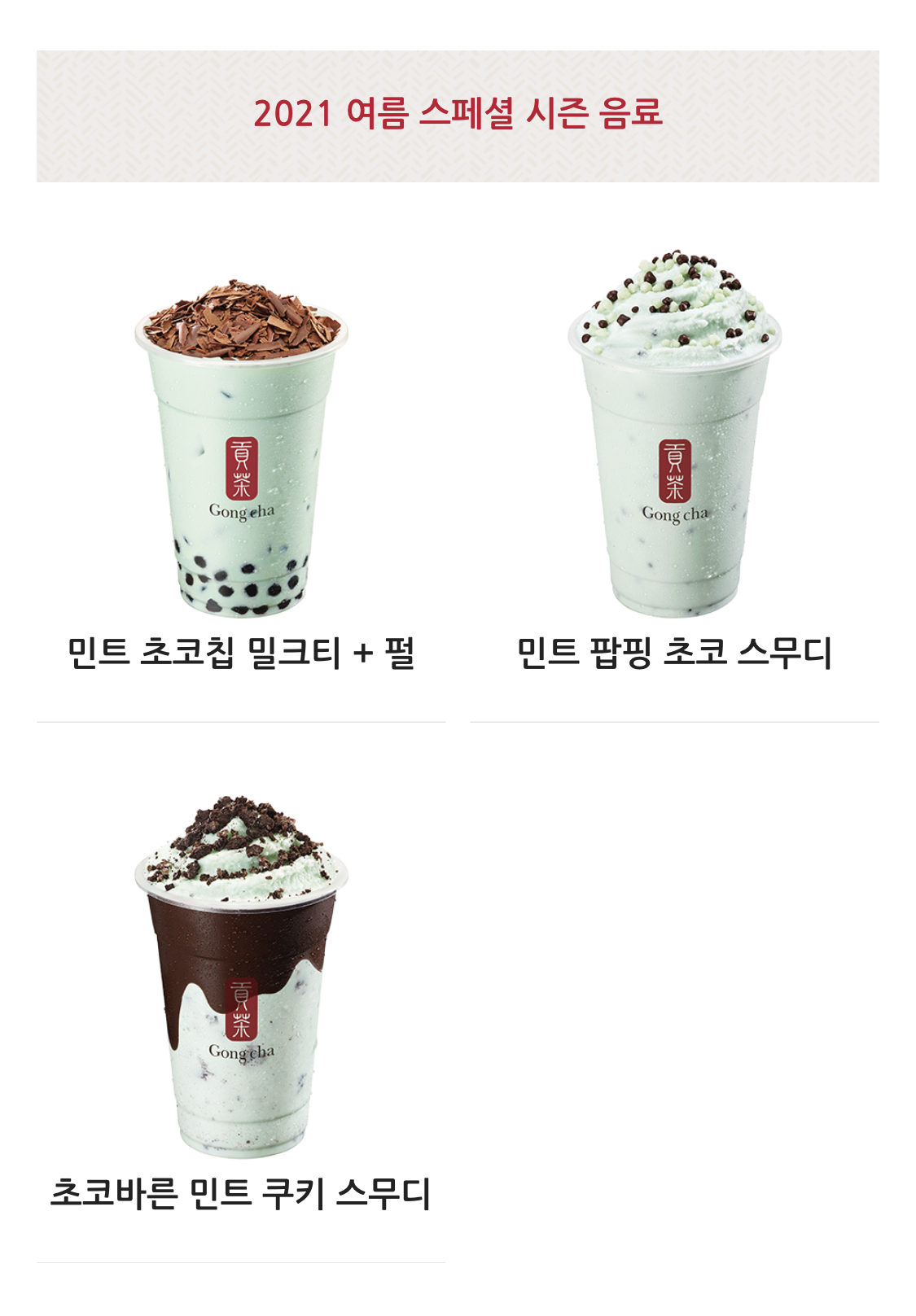 이번에 공차에서 나온 민트초코 메뉴는 세가지에요.