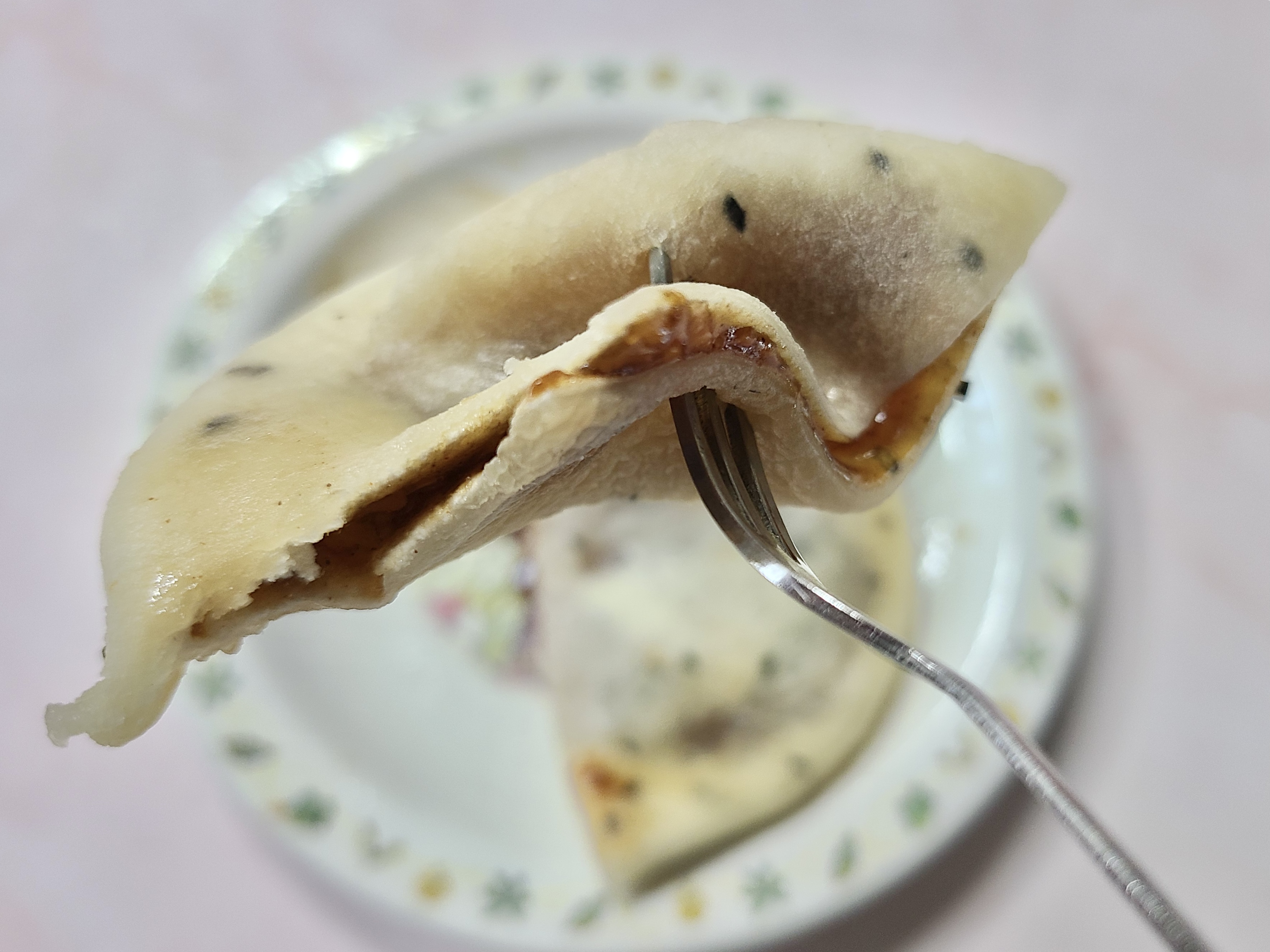 이미 구워져서 나온 제품이기 때문에 중간중간 노릇노릇함을 느낄 수도 있었답니다. 호떡믹스의 경우 직접 후라이팬에 구워야 먹을 수 있으니 조금 번거로운 편인데 이건 간편하게 먹을 수 있어서 좋네요.