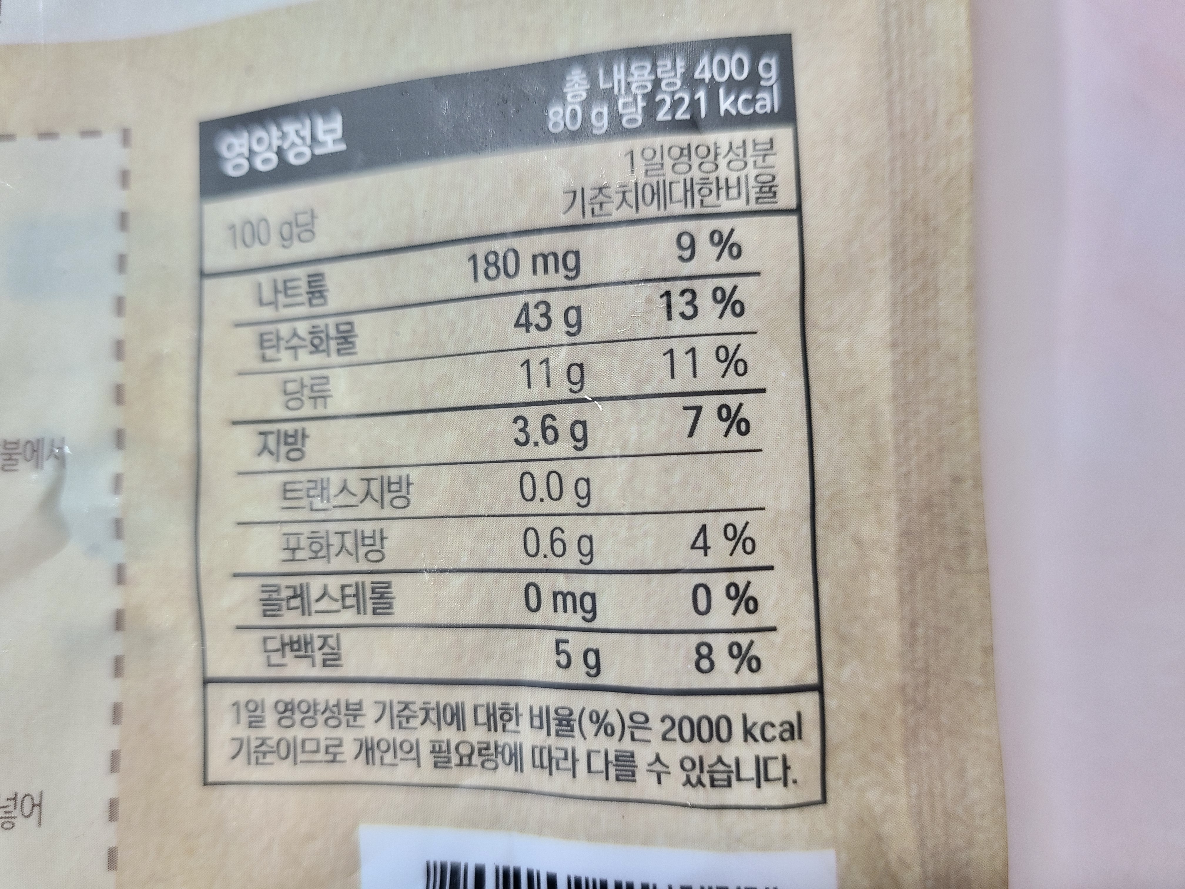 총내용량 400g / 80g 당 221kcal